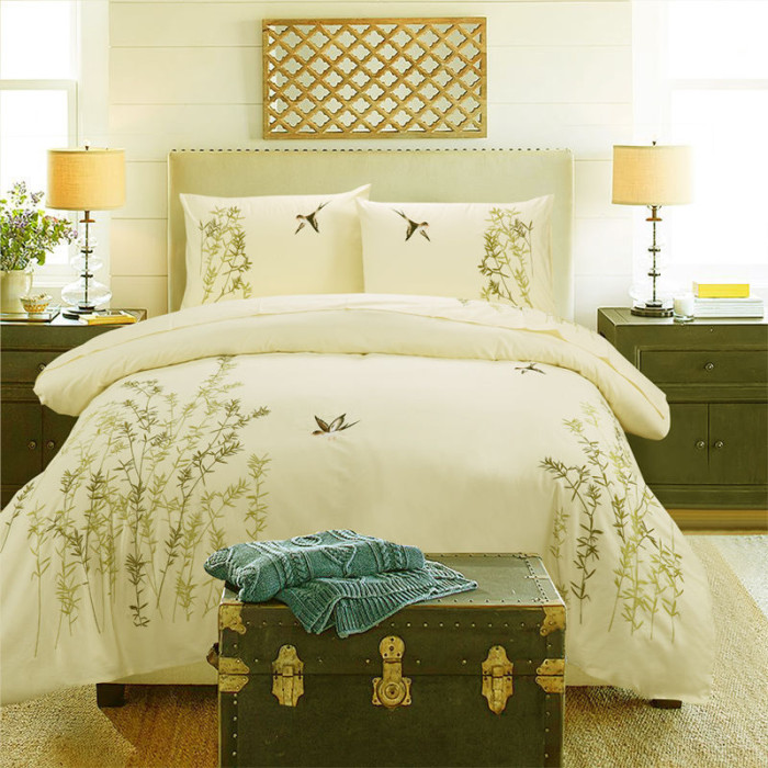 純棉被套單件刺綉全棉斜紋綉花雙人被罩床上用品四件套特價