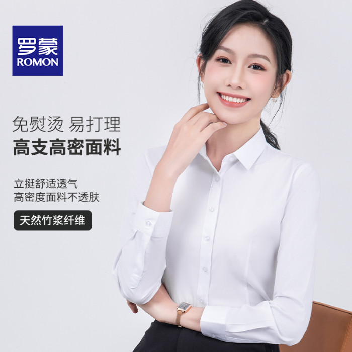 【免燙抗皺】羅矇女士長袖襯衫白職業夏通勤正裝面試工裝短袖襯衣