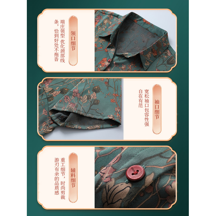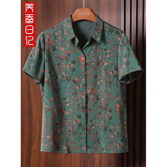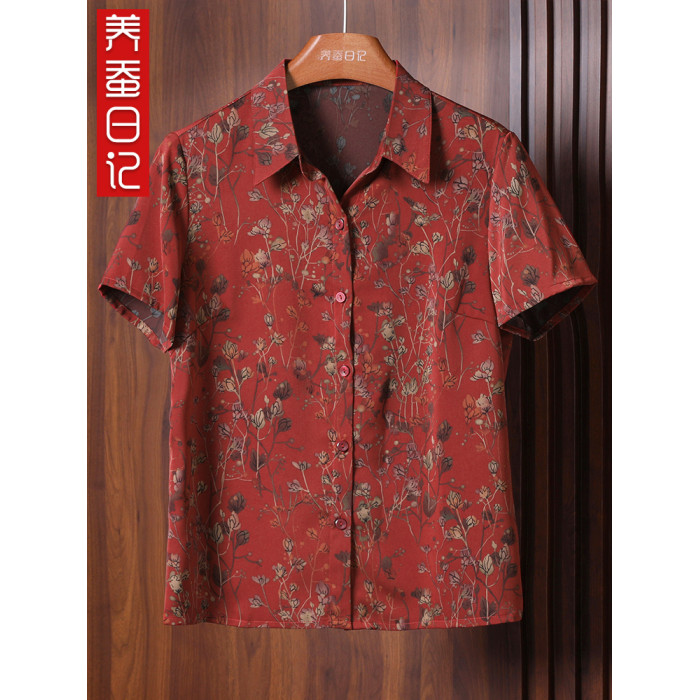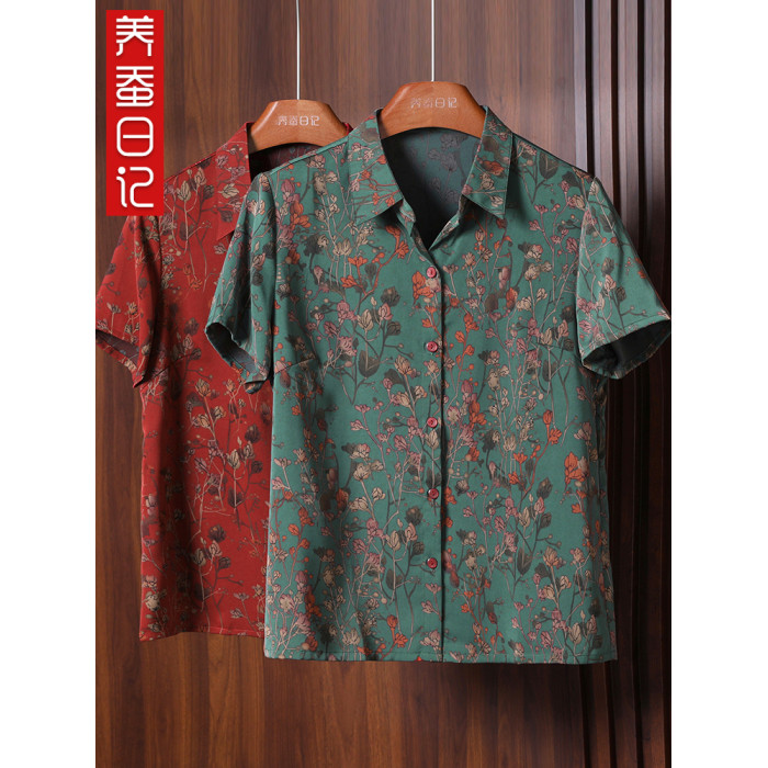 媽媽真絲上衣女中老年人桑蠶絲襯衫奶奶夏裝杭州絲綢老人太太印花