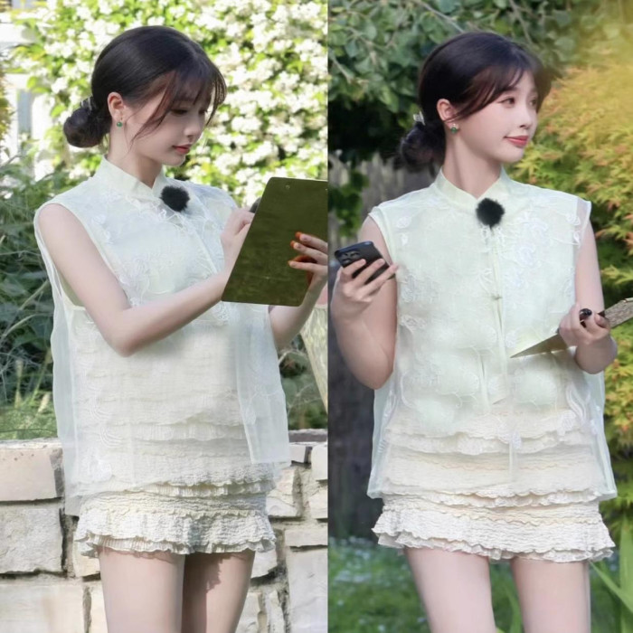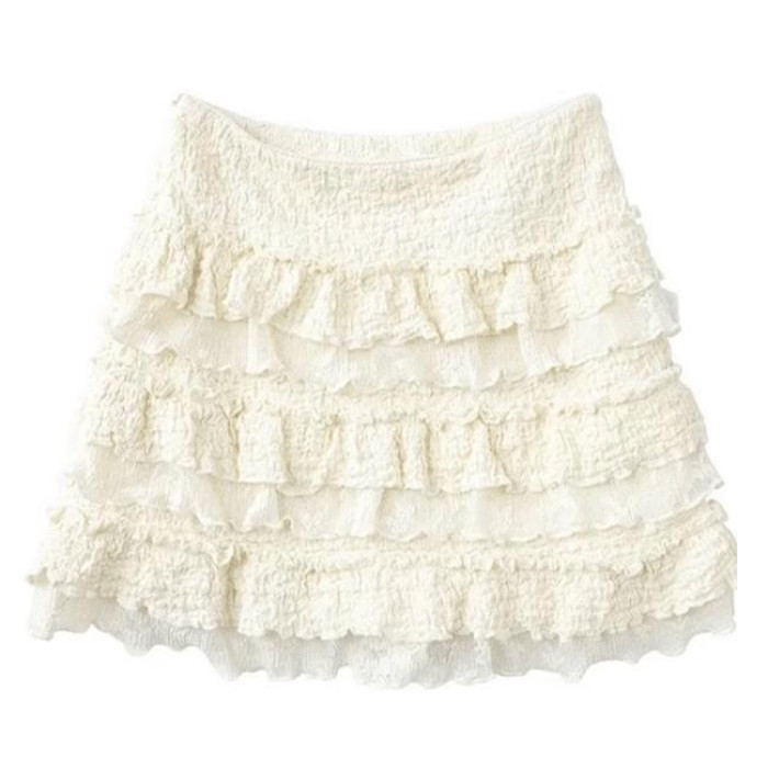 24夏季中餐廳虞書訢同款蛋糕荷葉小花邊半裙孫怡蕾絲短裙
