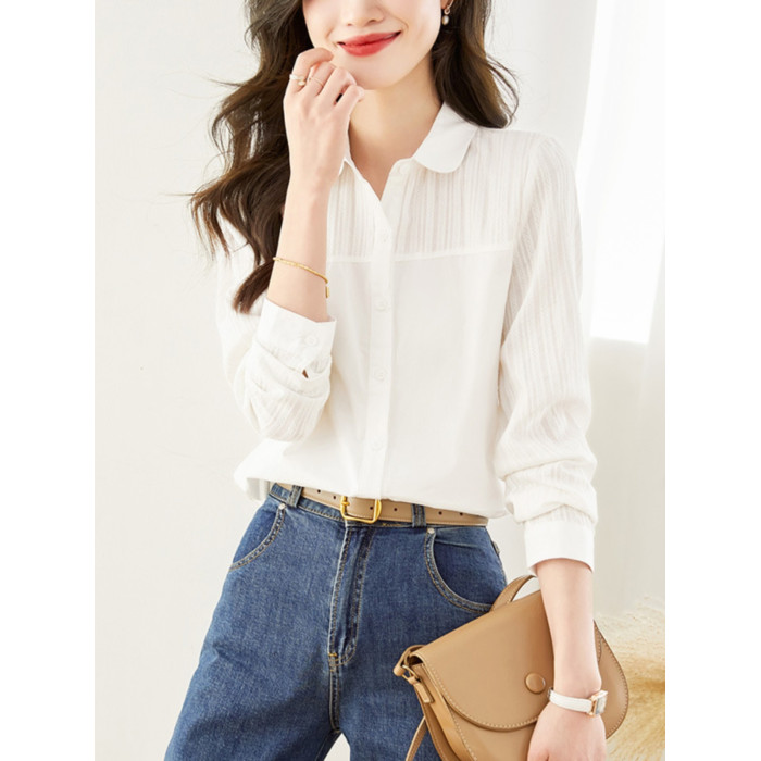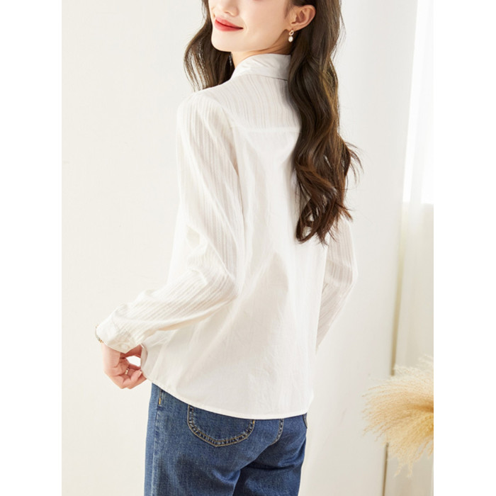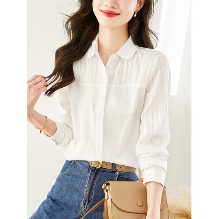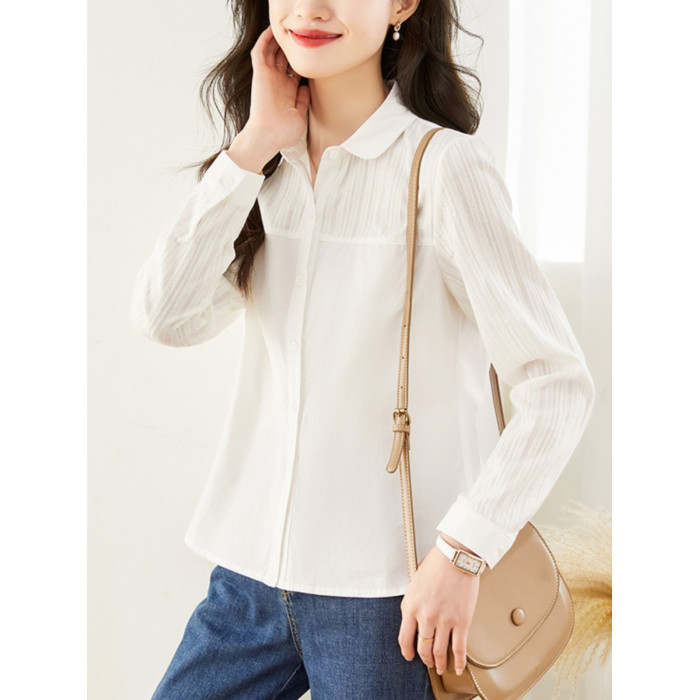 2025春季新款白襯衫女小個子上衣洋氣小衫全棉寬松顯瘦洋氣襯衣