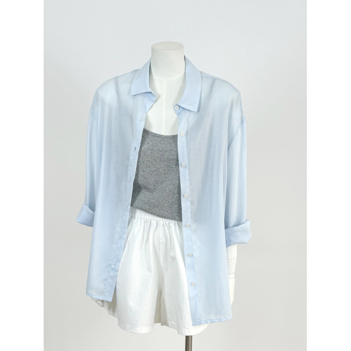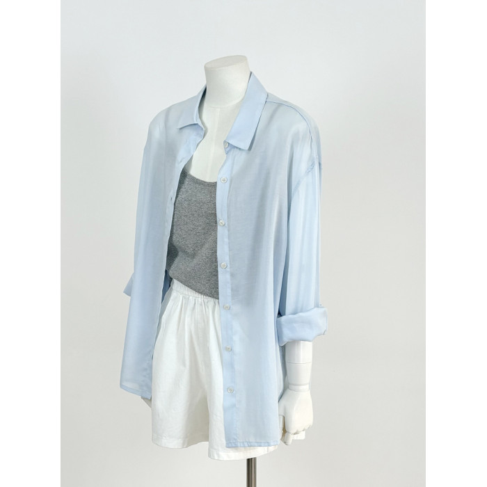 簡家 長袖天絲防曬襯衫女2025年春夏季寬松慵懶風小個子薄款襯衣