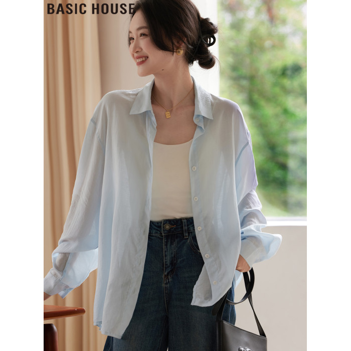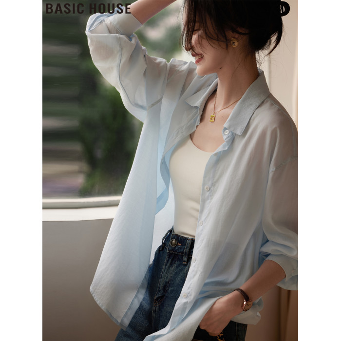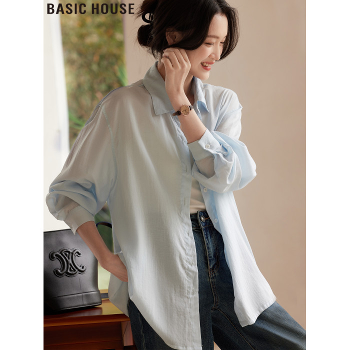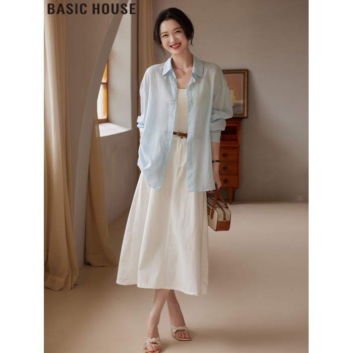 Basic House/百家好天絲萊賽爾中長款冰絲防曬襯衫女2025夏季新款
