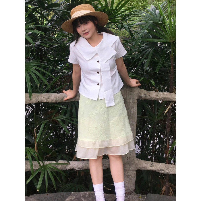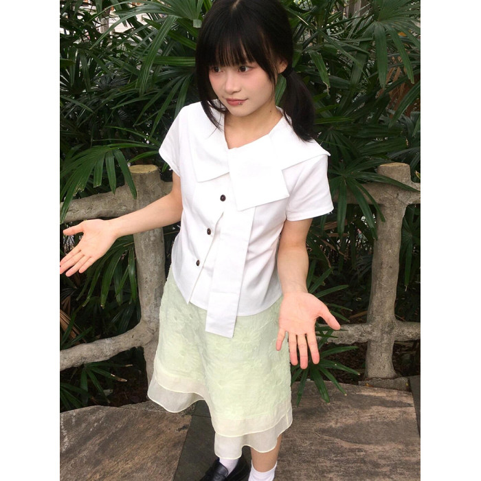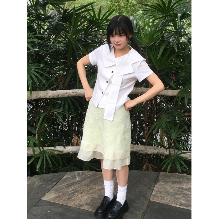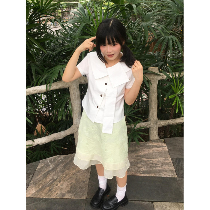 日系短袖襯衫女修身不規則襯衣設計感小衆穿搭短款夏季白色上衣