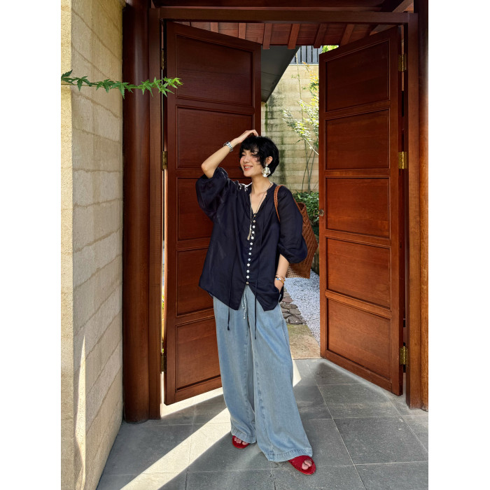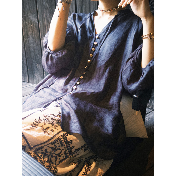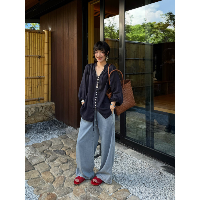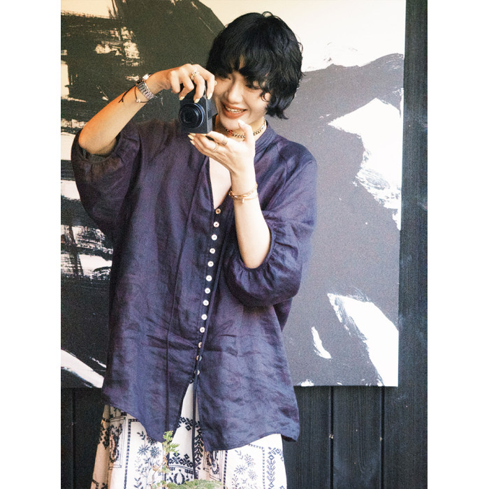 BUUYIE 海珥 2025夏季文藝風慵懶感上衣氣質襯衣女苧麻法式薄襯衫