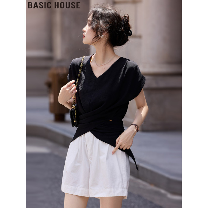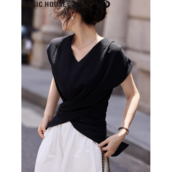 Basic House/百家好法式V領無袖收腰襯衫氣質絕美小衫女2025夏季