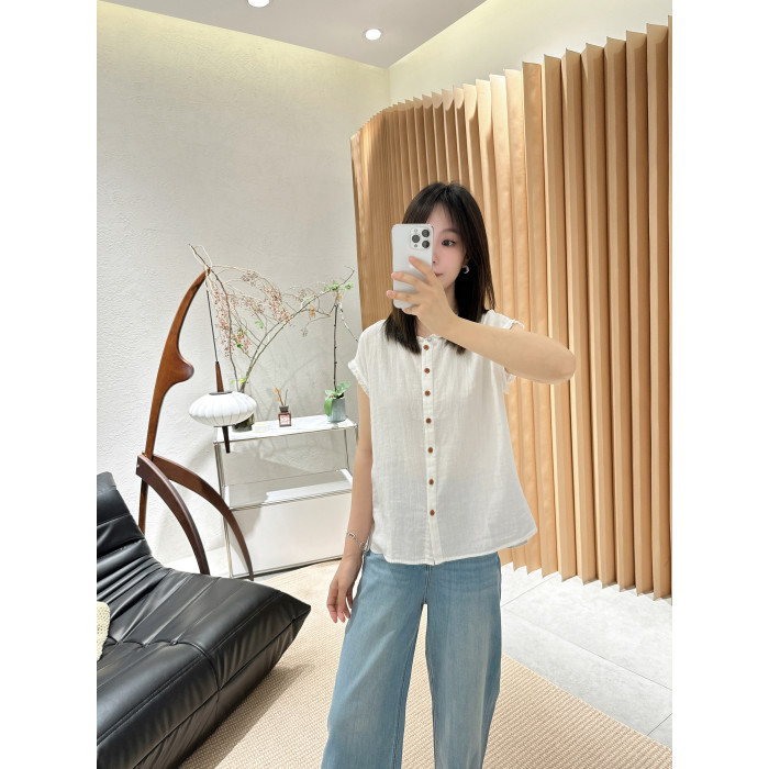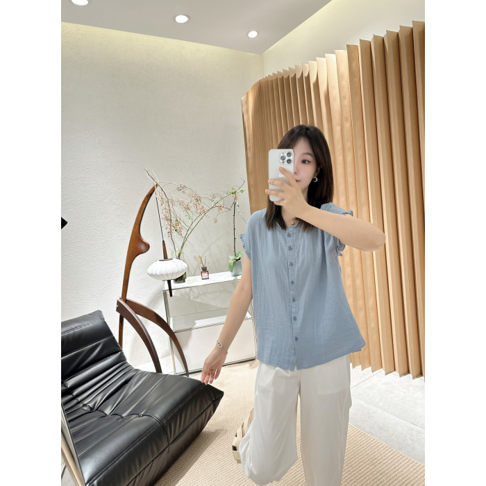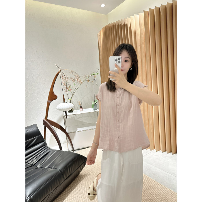 【限定!】夏季的王炸100%雙層紗純色的木耳邊小衫襯衫女