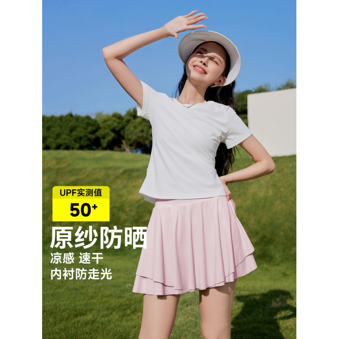 班尼路白色防走光運動短裙女2025夏季運動防曬速乾涼感三分裙女Q