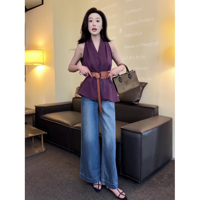 2025夏季新款法式時尚簡約百搭款無袖背心襯衫女修身顯瘦小襯衣女
