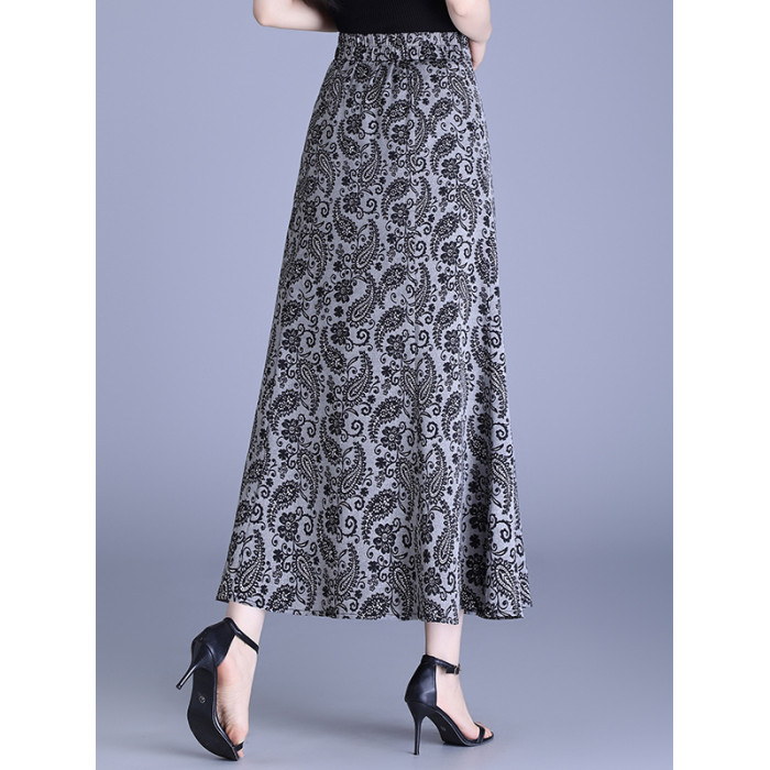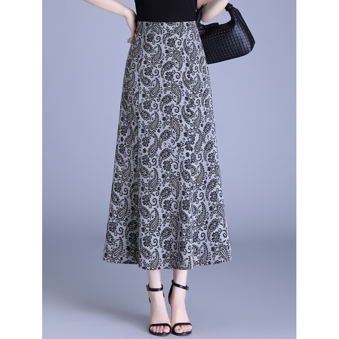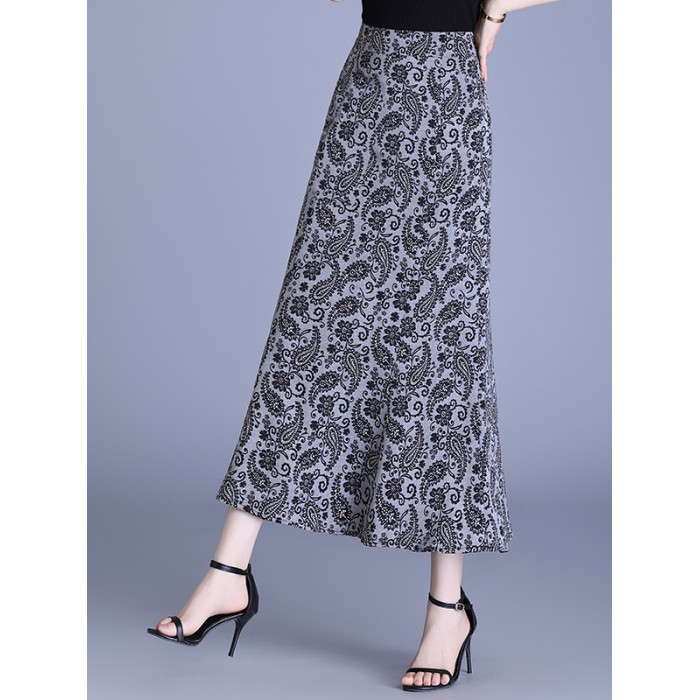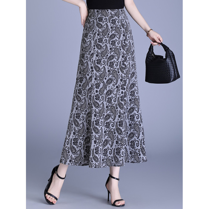印花半身裙女夏季2025新款高腰顯瘦A字包臀裙中長款胖mm大擺繖裙