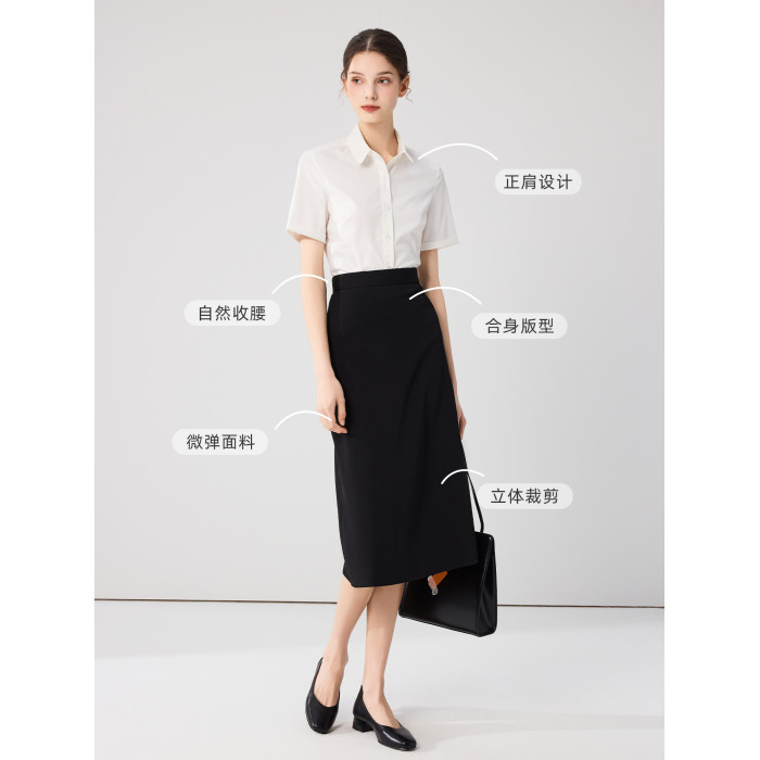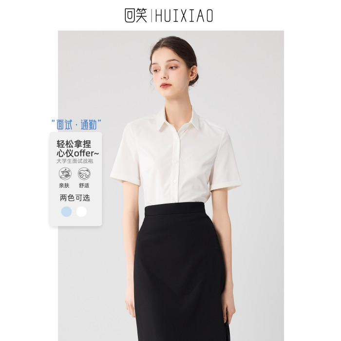 迴笑竹纖維白色短袖襯衫女夏季公考正裝襯衣面試職業方領通勤上衣