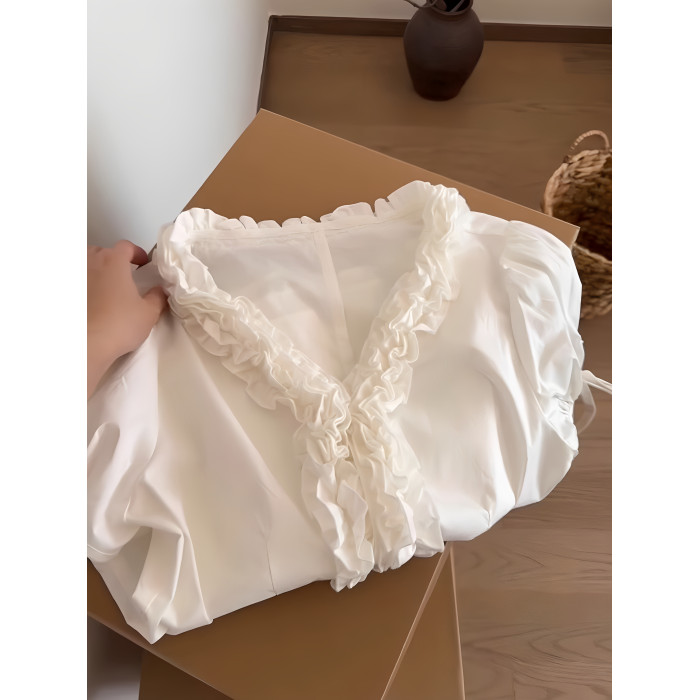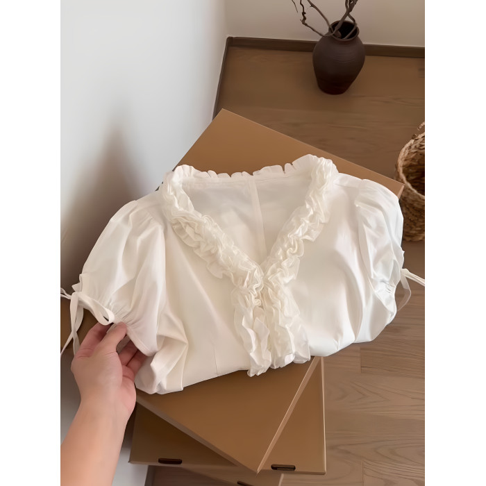 法式溫柔風短袖襯衫女夏裝2025夏季新款甜美減齡遮肉顯瘦t恤上衣