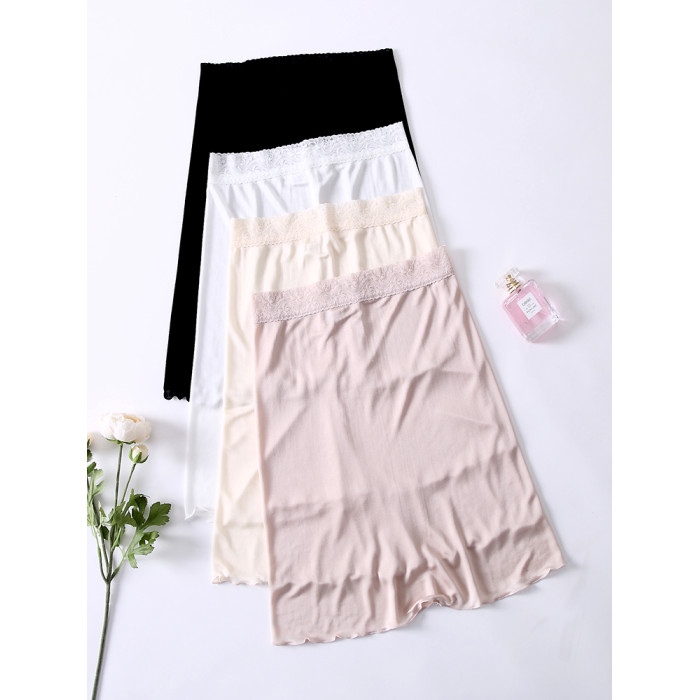 桑蠶絲真絲內襯裙半身打底裙防走光防透蕾絲短裙白色一步裙女薄款