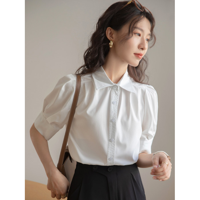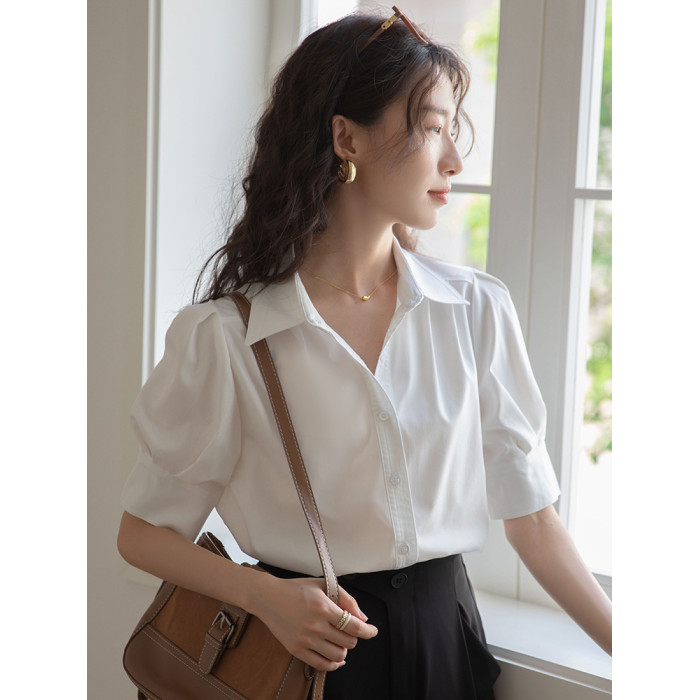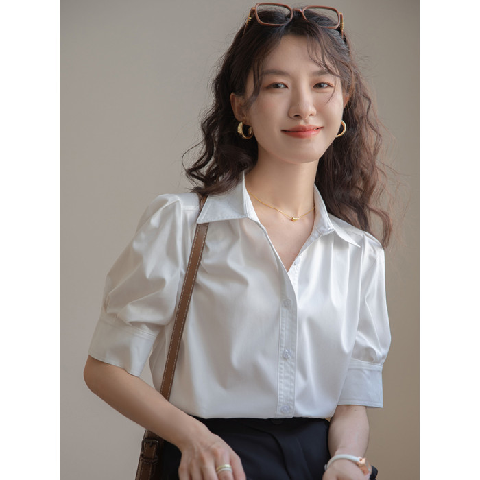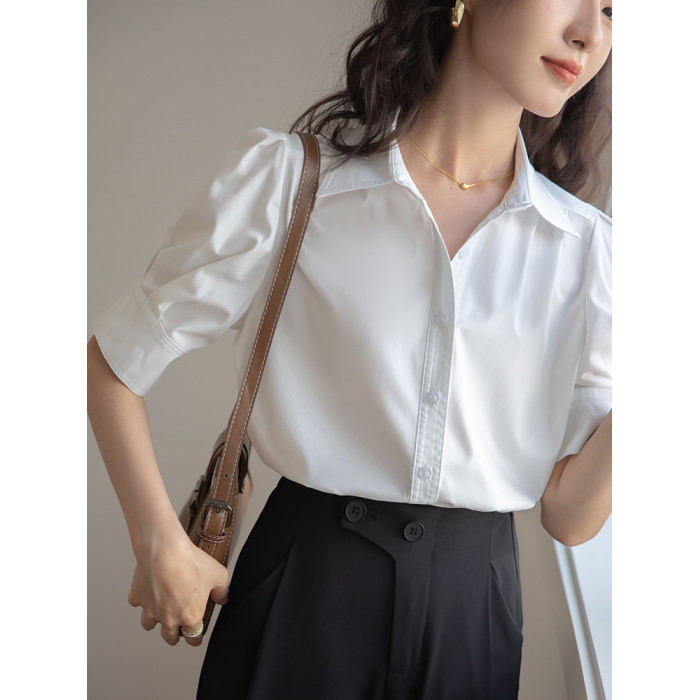 法式泡泡袖白色襯衫女短袖2025夏季新款公務通勤職業面試正裝上衣