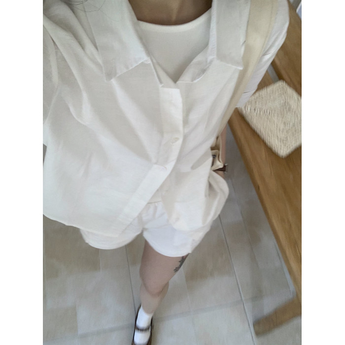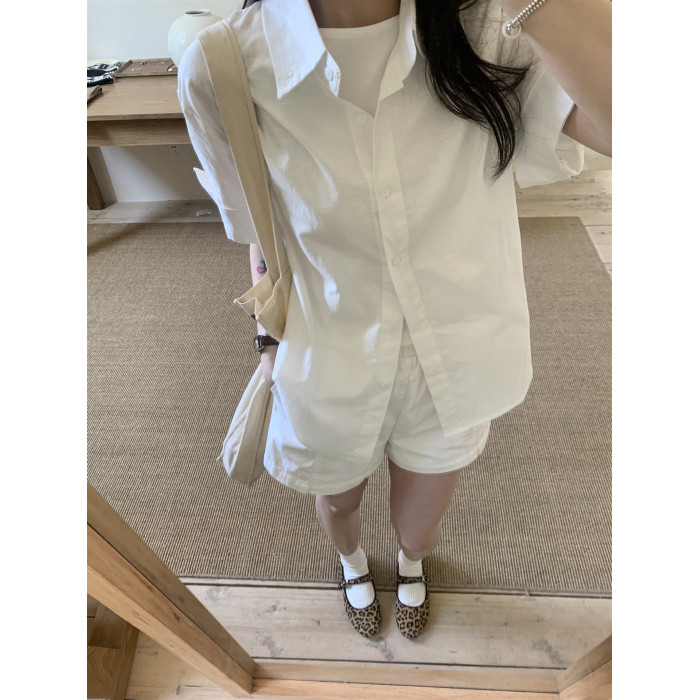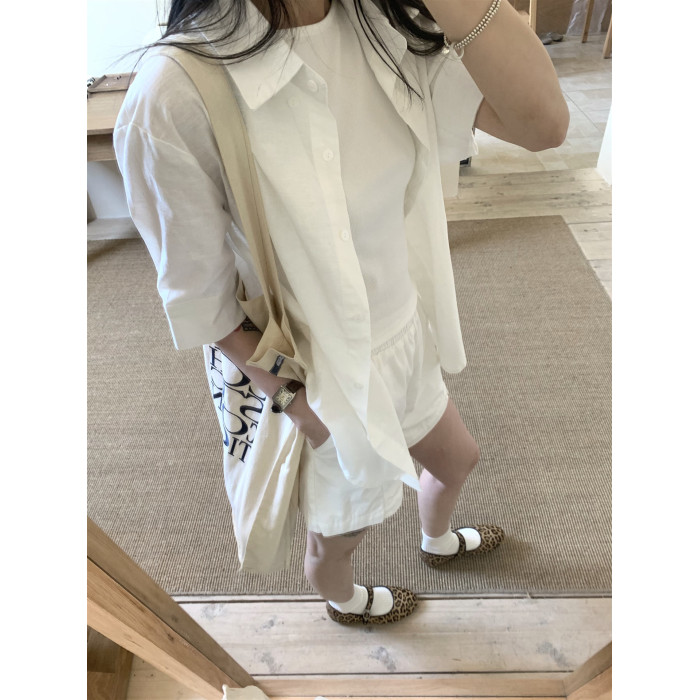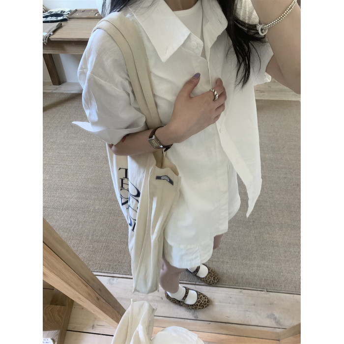 2025年夏季新款韓系百搭通勤簡約氣質中袖卷邊高級感亞麻棉襯衫女