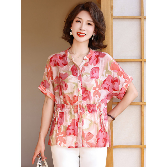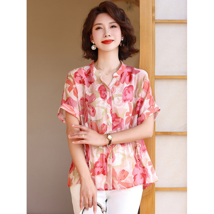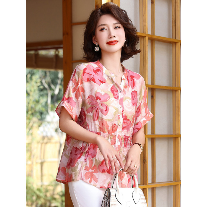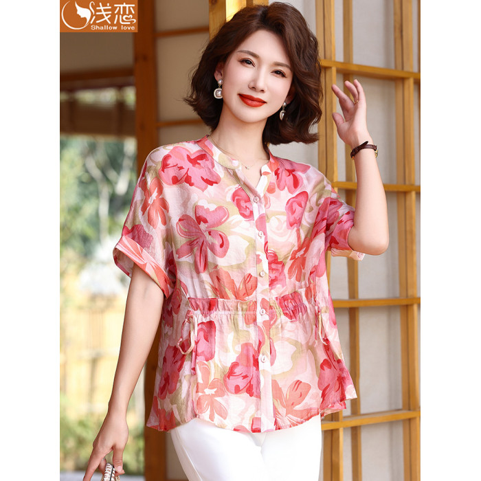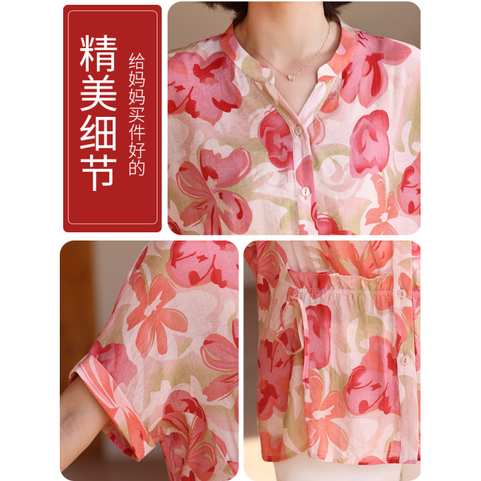 媽媽洋氣短袖襯衫中年女裝夏裝襯衣中老年夏季2025新款薄款上衣服