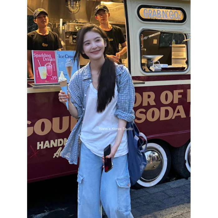 【Nana】韓國Raucohouse章若楠同款格子襯衫女寬松休閒長袖襯衣秋