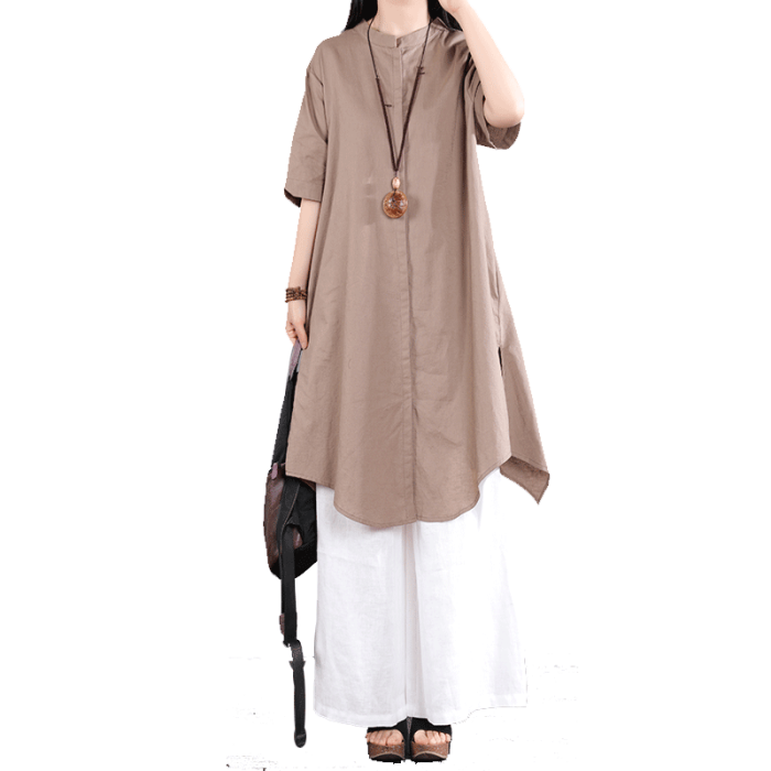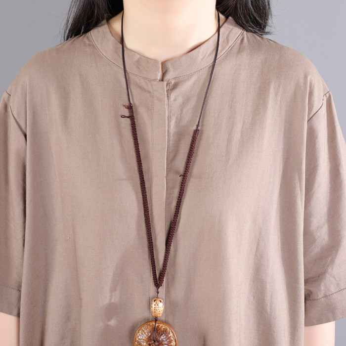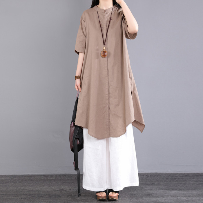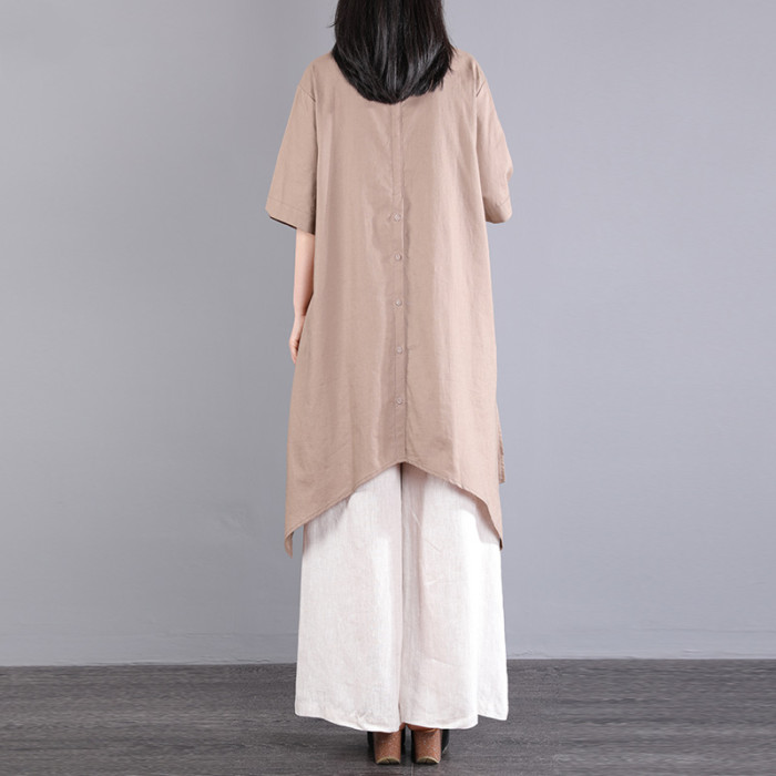 風信棉麻襯衫女夏季長款2025新款亞麻休閒套裝女寬松女士襯衣短袖