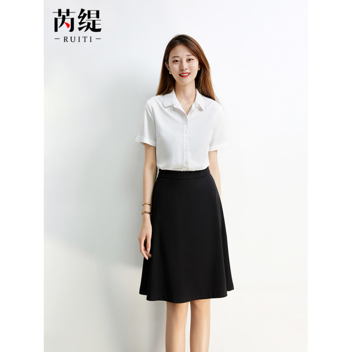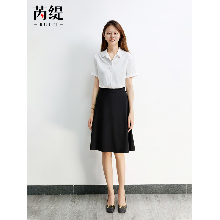 面試套裝女夏季白色短袖襯衫教師公考答辯正裝職業半身裙兩件套