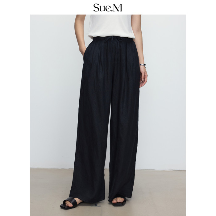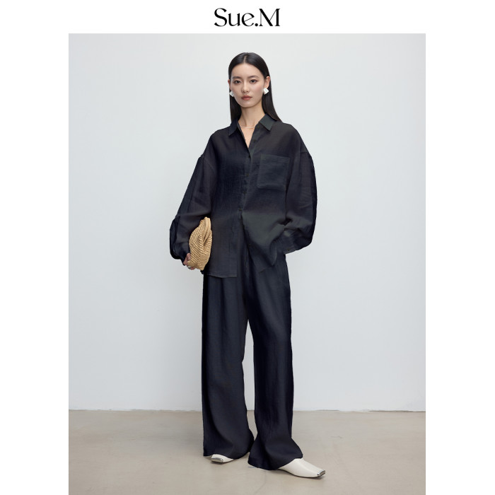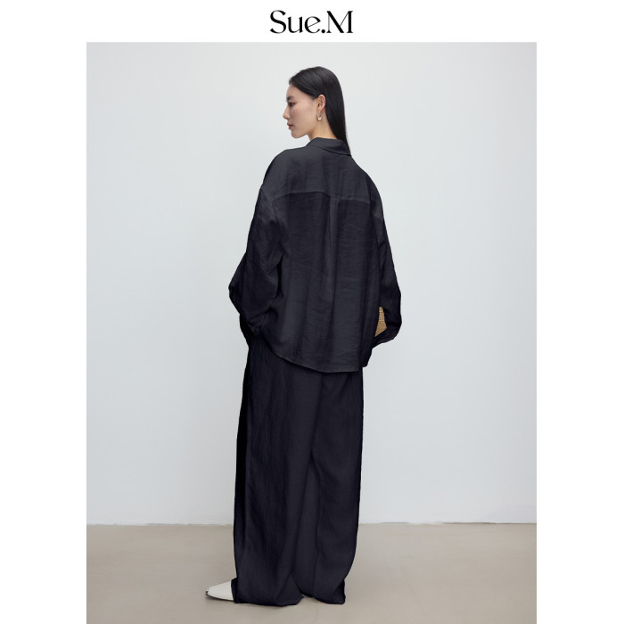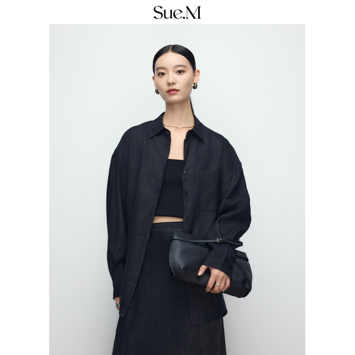Sue.M進口100%亞麻松弛高級感黑色寬松襯衫/長褲/半身裙/短款套裝