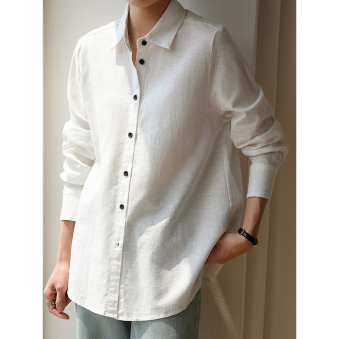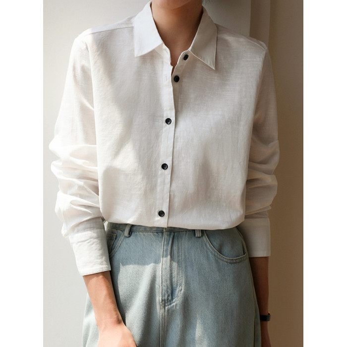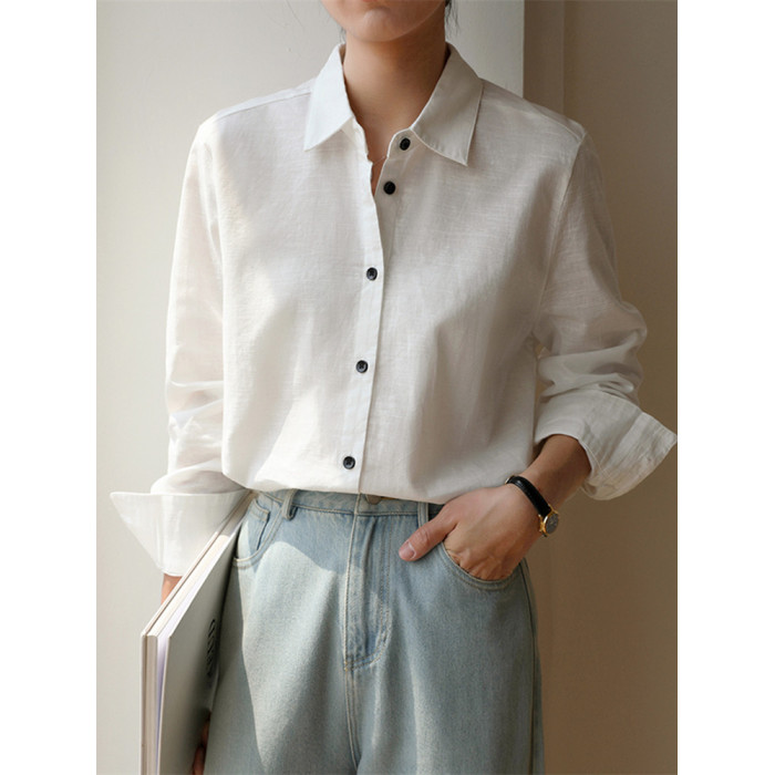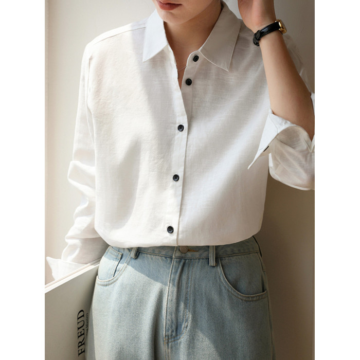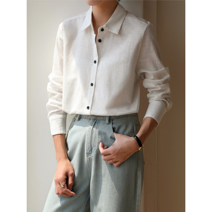 初秋亞麻長袖漂亮白襯衫女爆款平替百搭通勤襯衣高級氣質防曬上衣