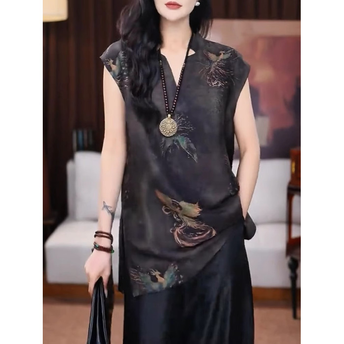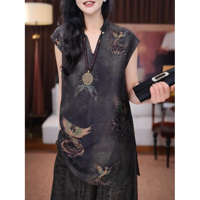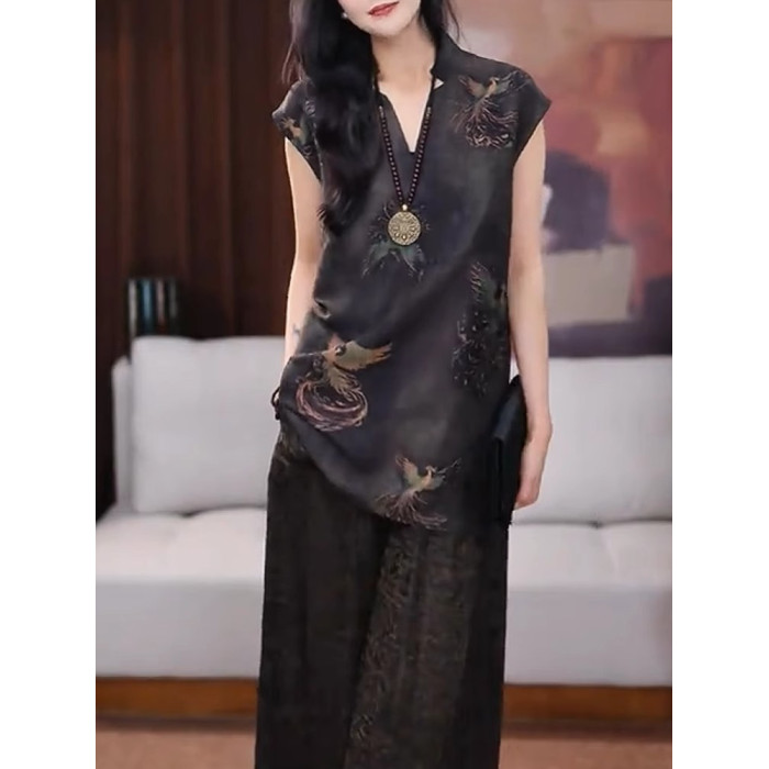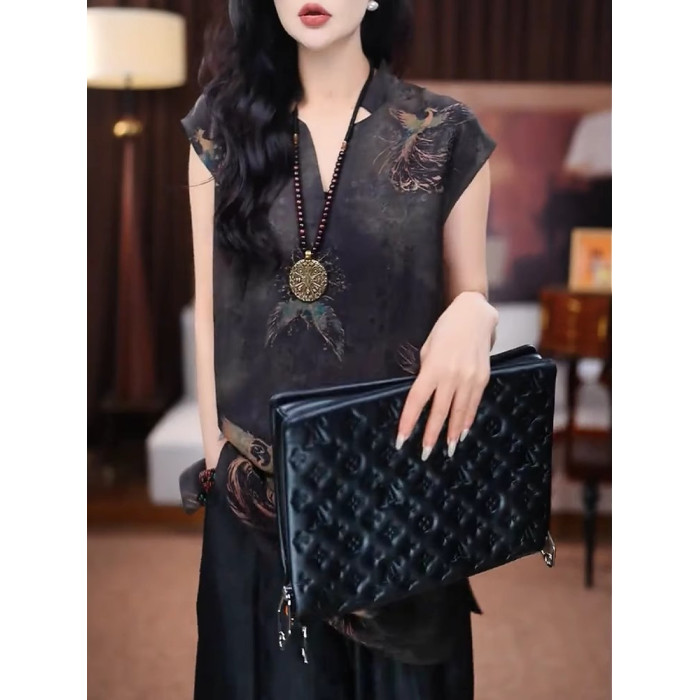 新中式國風盤釦印花短袖襯衫女2025夏季新款輕奢高級感休閒上衣女