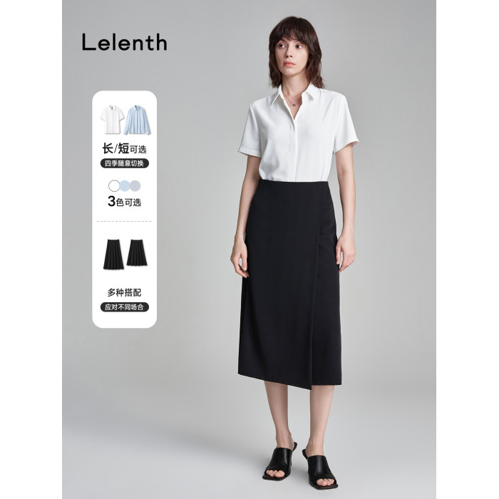 萊倫斯布白色暗門襟緞面短袖襯衫女夏修身顯瘦OL職業面試襯衣套裙