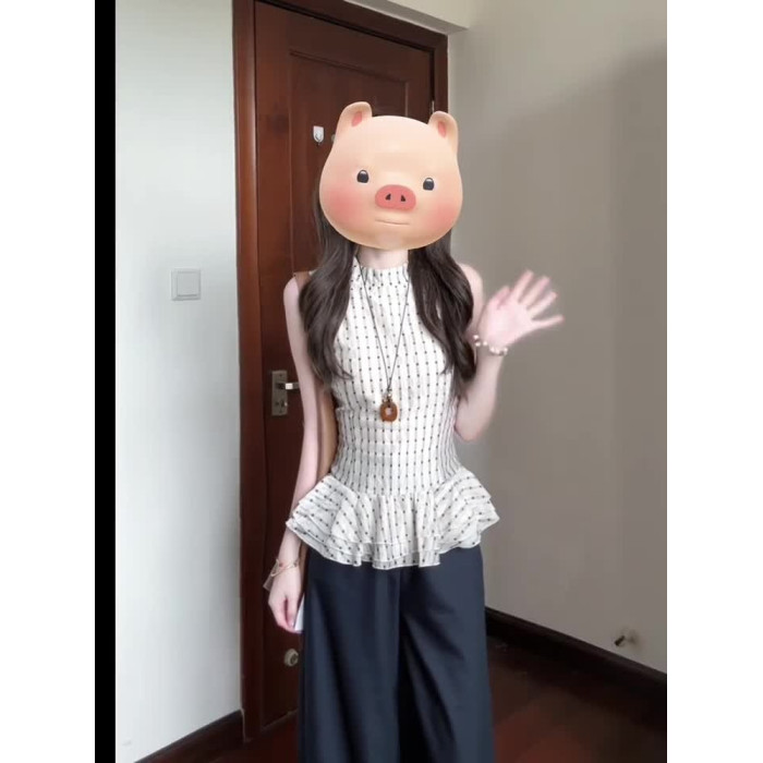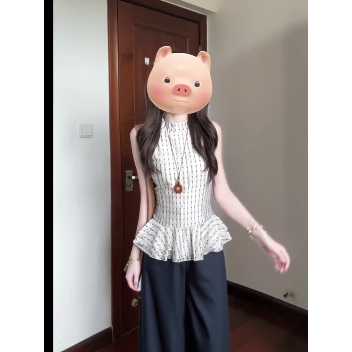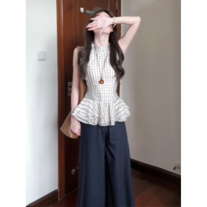 2025新款爆款上衣高級感輕奢減齡洋氣白色波點荷葉邊無袖襯衫女夏