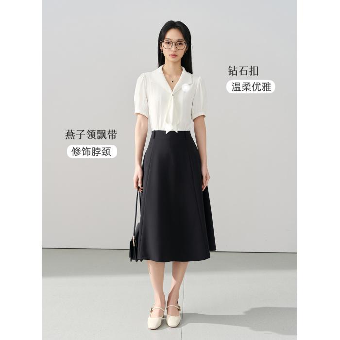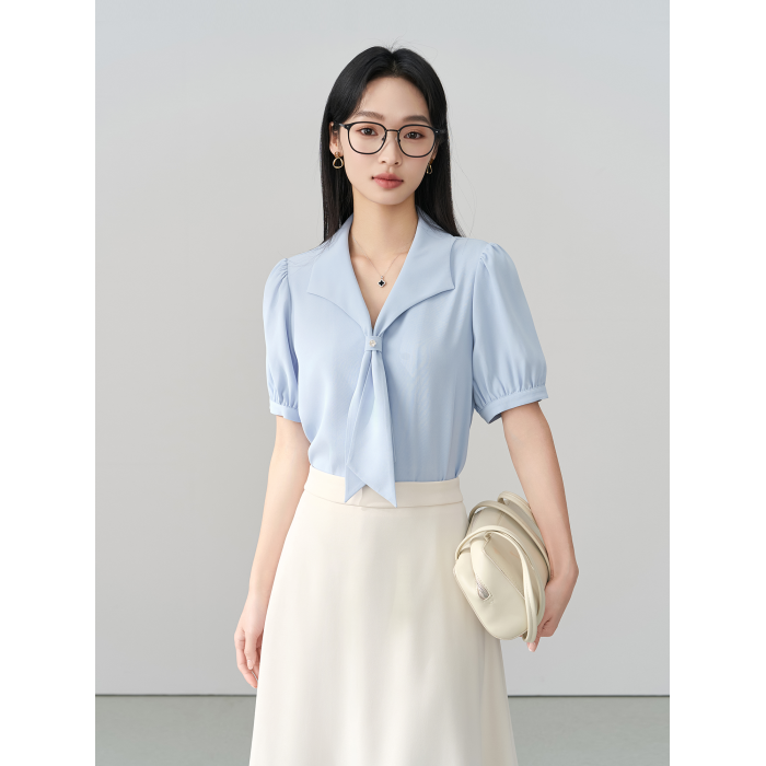 伯德小姐藍色雪紡襯衫女士夏職場通勤正裝短袖上衣面試職業裝襯衣