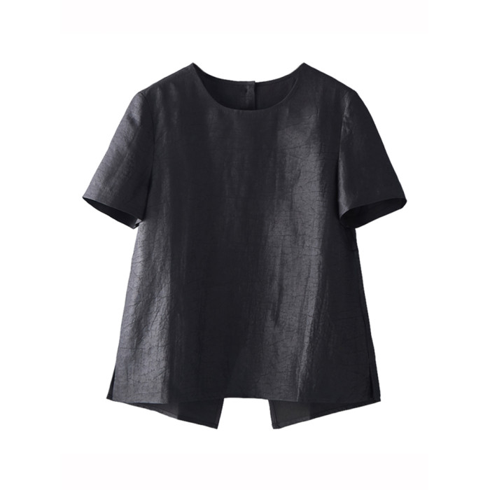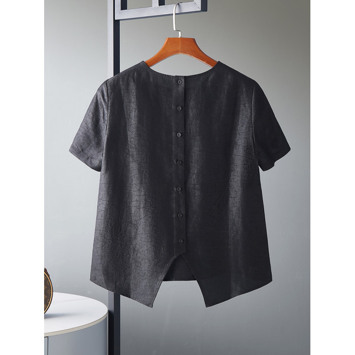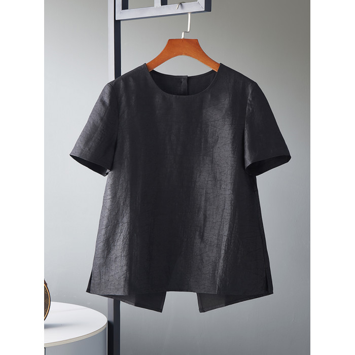非遺香雲紗龜裂紋真絲襯衫女短袖上衣2025新款媽媽寬松圓領小衫夏