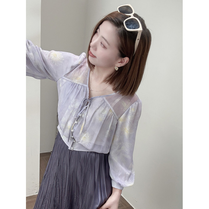 美到爆!防曬! 超重工銅氨絲 輕系垂感 減齡淑女印花襯衫+半身裙