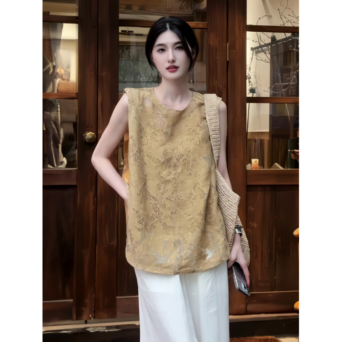 新中式國風女裝襯衫女夏款2025新款爆款夏季雪紡衫提花無袖上衣女