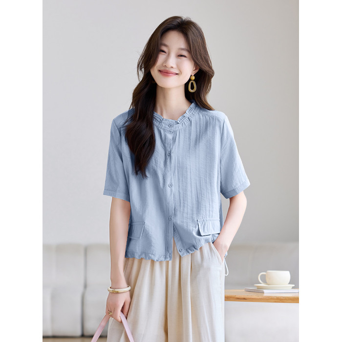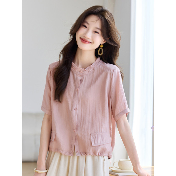 短袖襯衫上衣女夏裝2025新款時尚輕薄休閒減齡小個子天絲棉質襯衣