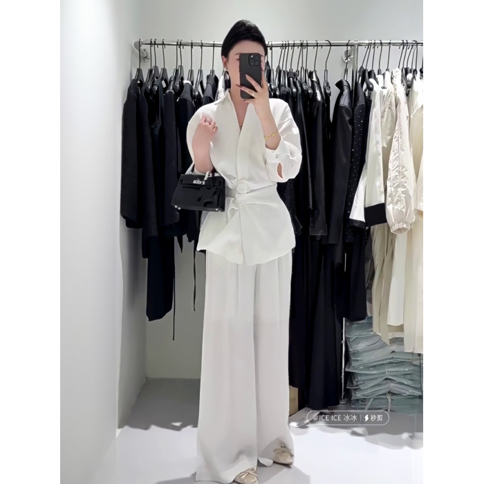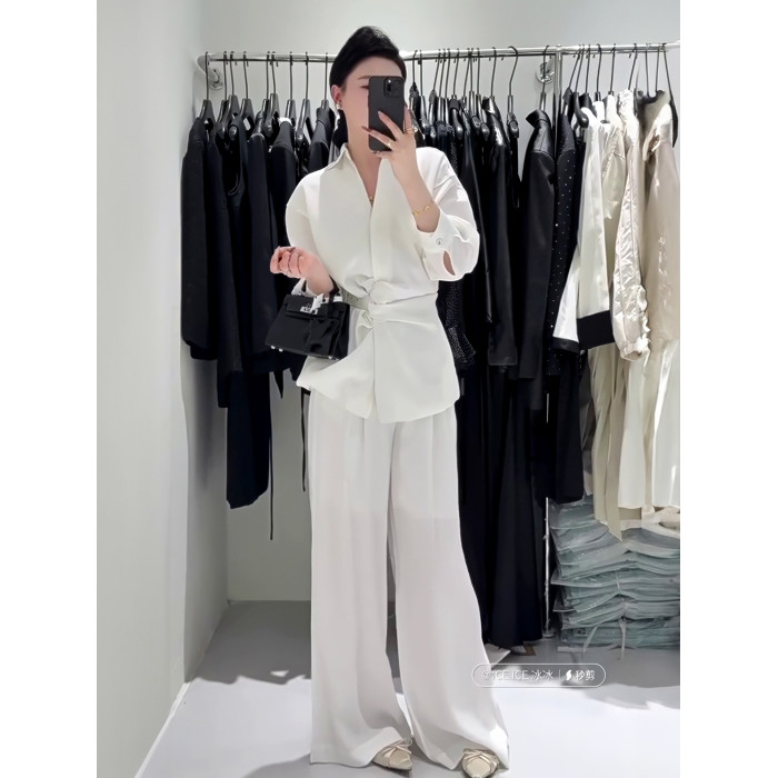 春季穿搭一整套韓系風格高級感氣質時尚洋氣減齡黑色襯衫套裝褲女
