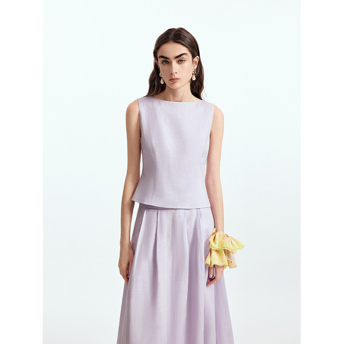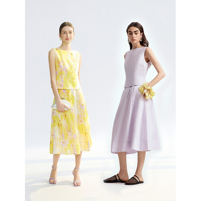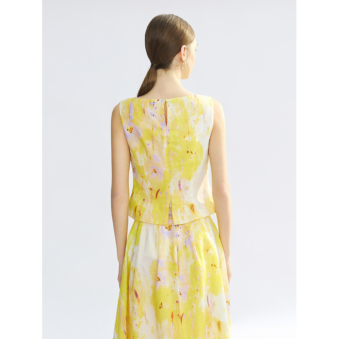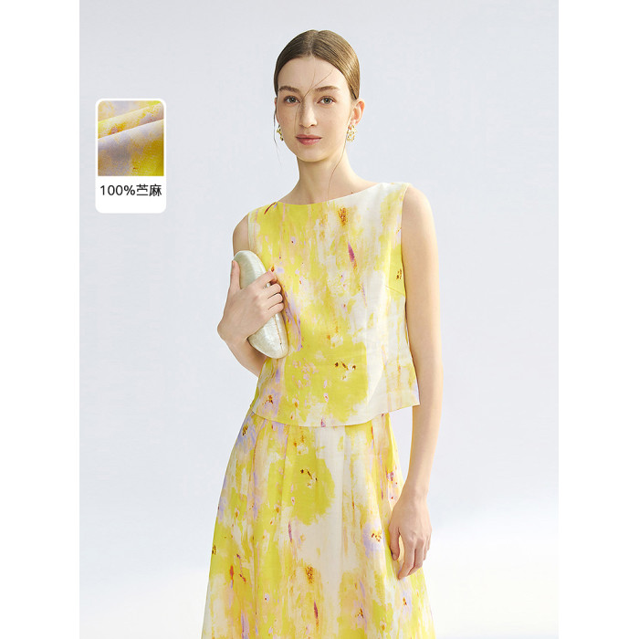 【漾25系列】朗姿苧麻印花度假無袖襯衫高級感上衣2025年夏季新款