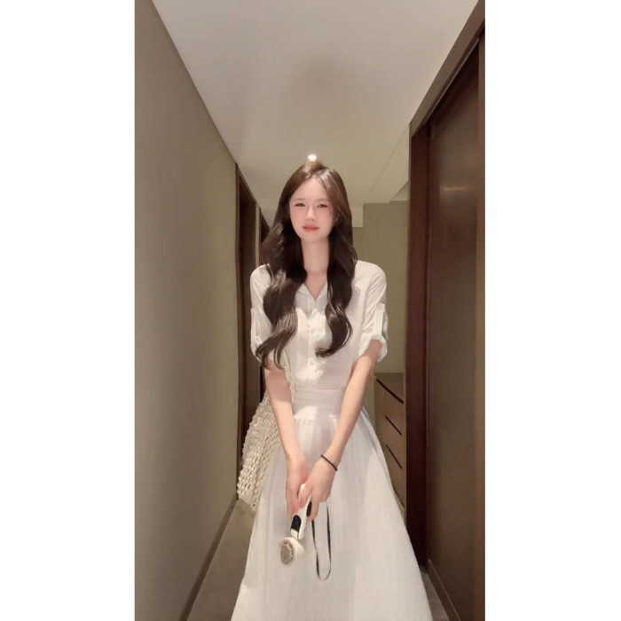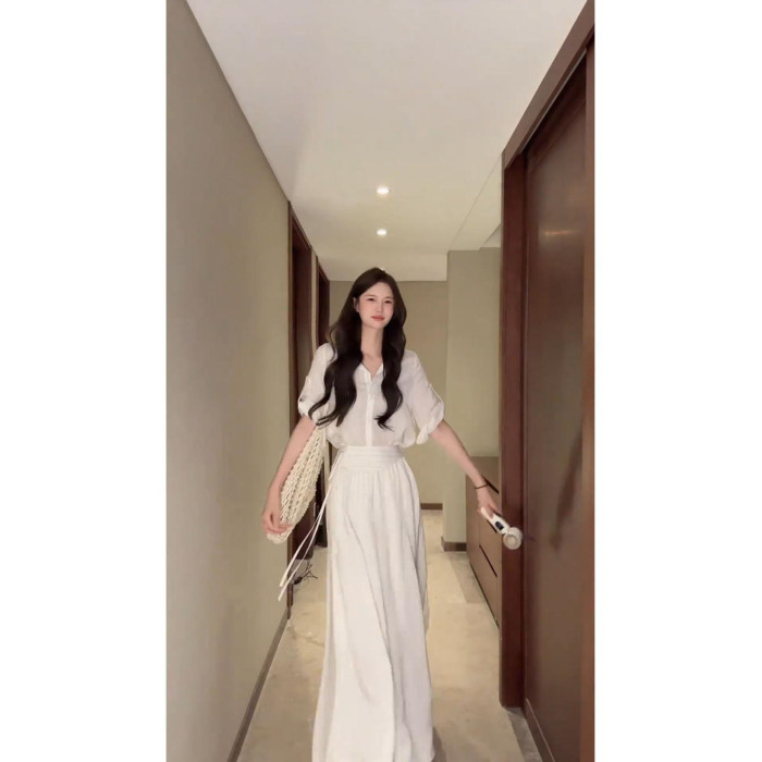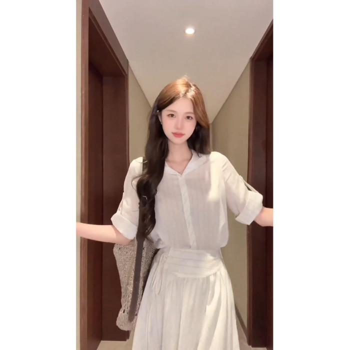 慵懶風休閒寬松條紋襯衫上衣顯瘦半身裙套裝女2025夏季新款兩件套