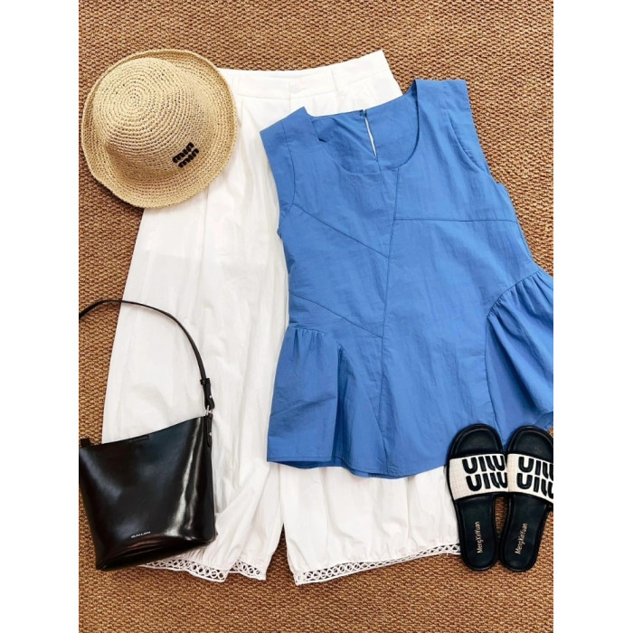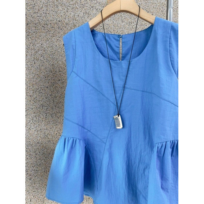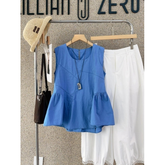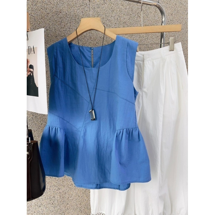 2025超火減齡法式小資上衣背心設計感克萊因藍顯瘦女士無袖襯衫夏