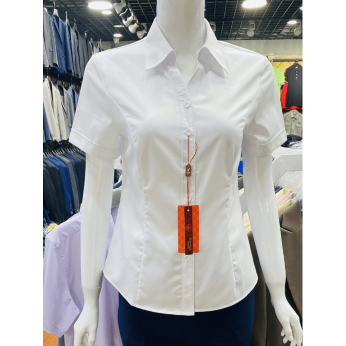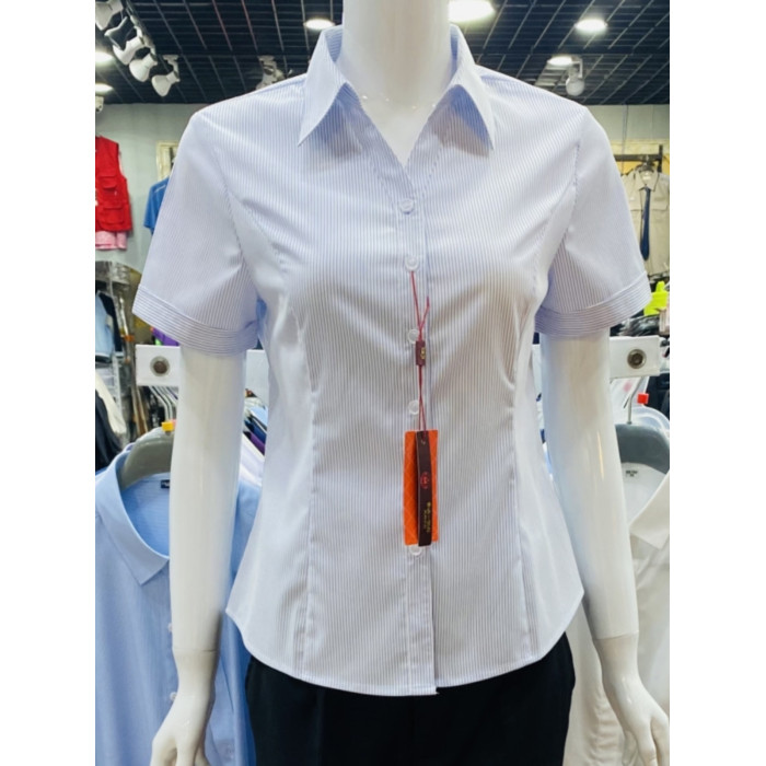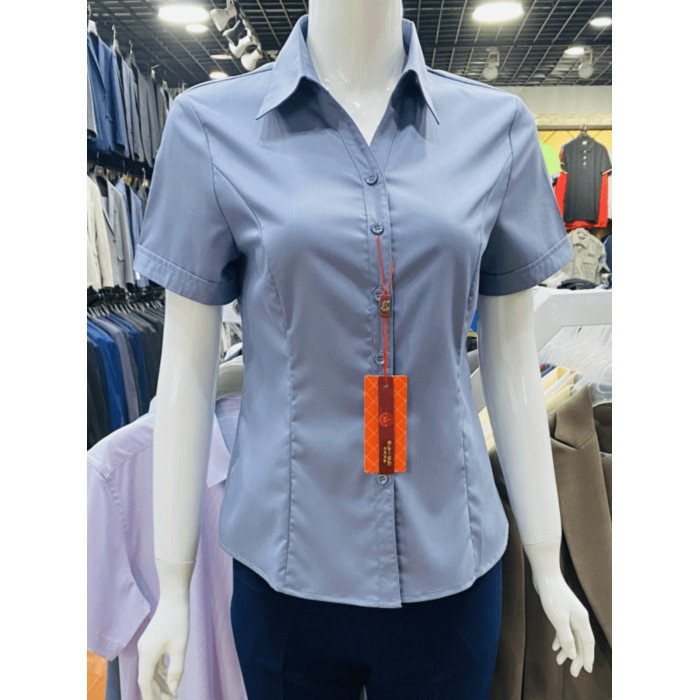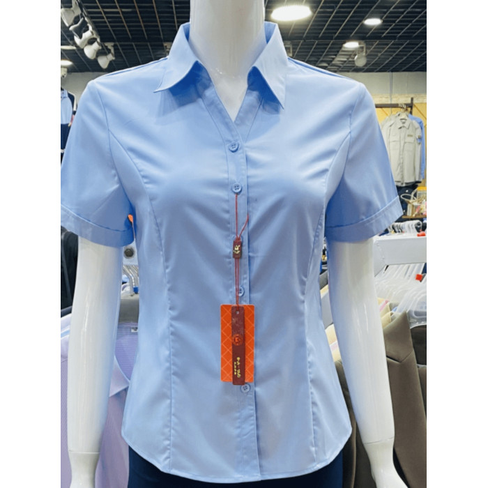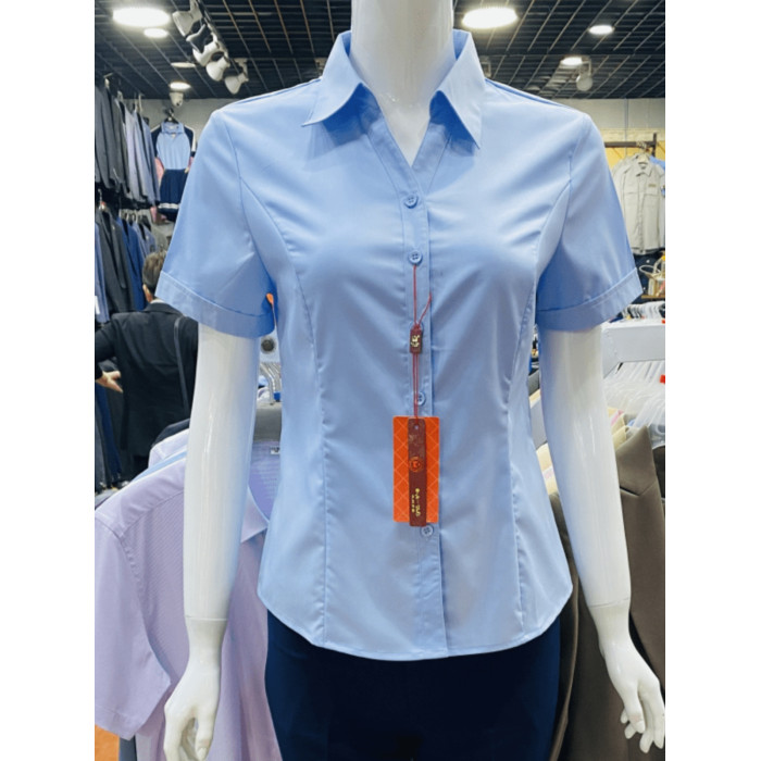 比利多美C165藍色女V領短袖襯衫竹纖維免燙面試上班工作服職業裝