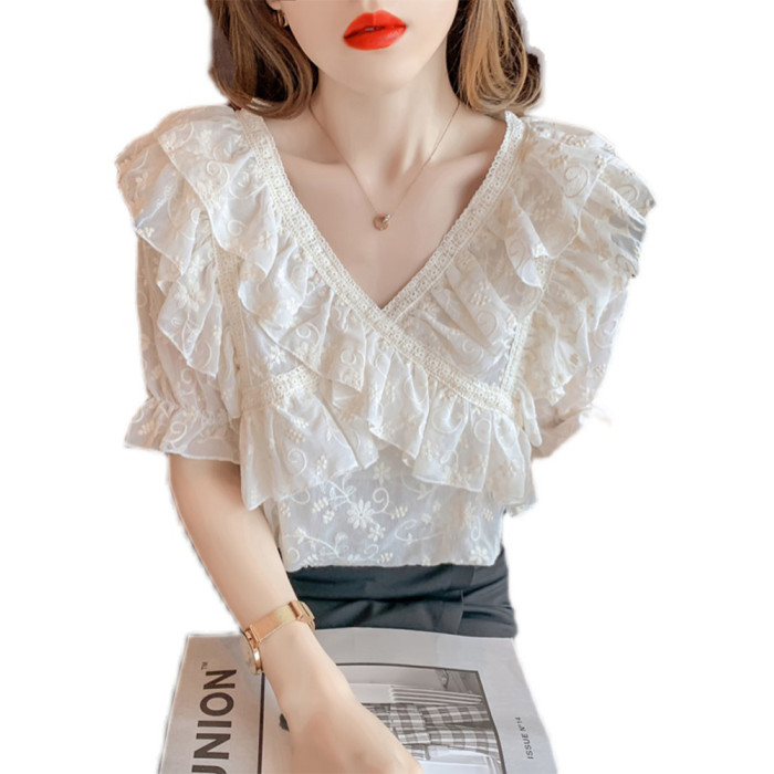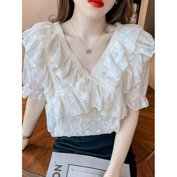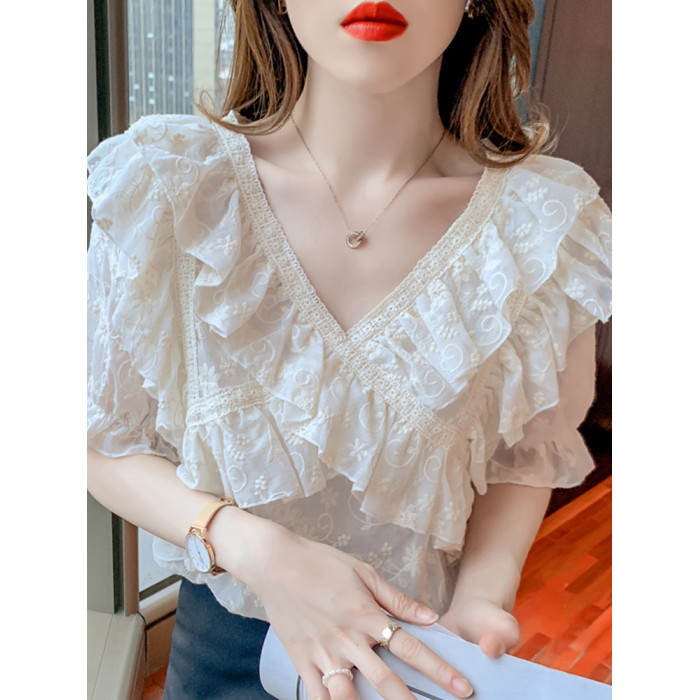 歐洲站雪紡襯衫女夏季薄款2025年新款設計感小衆寬松洋氣v領大碼