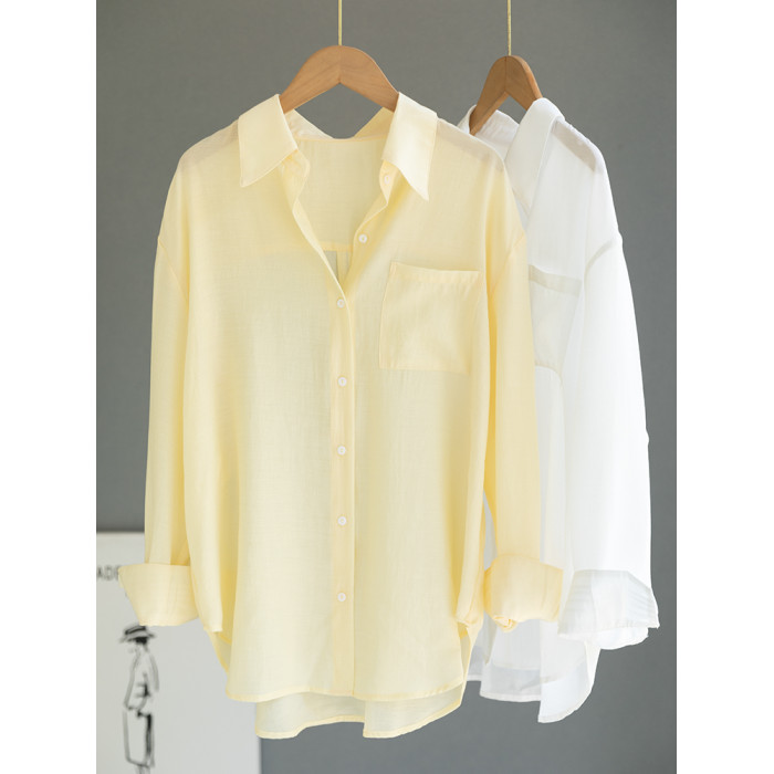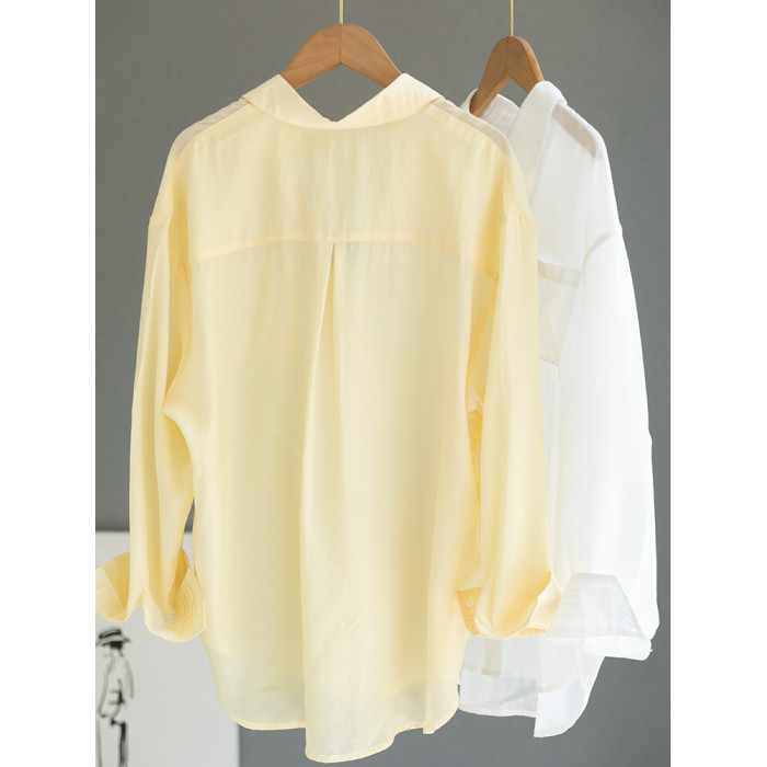 鵞黃色夏季薄款醋酸天絲襯衫女透氣輕薄高級感防曬衣寬松休閒上衣