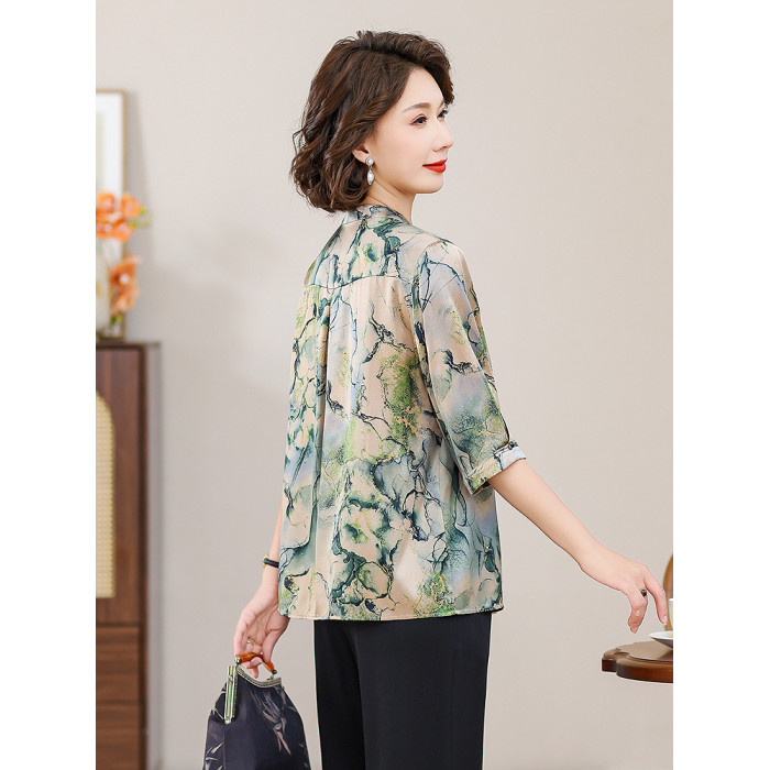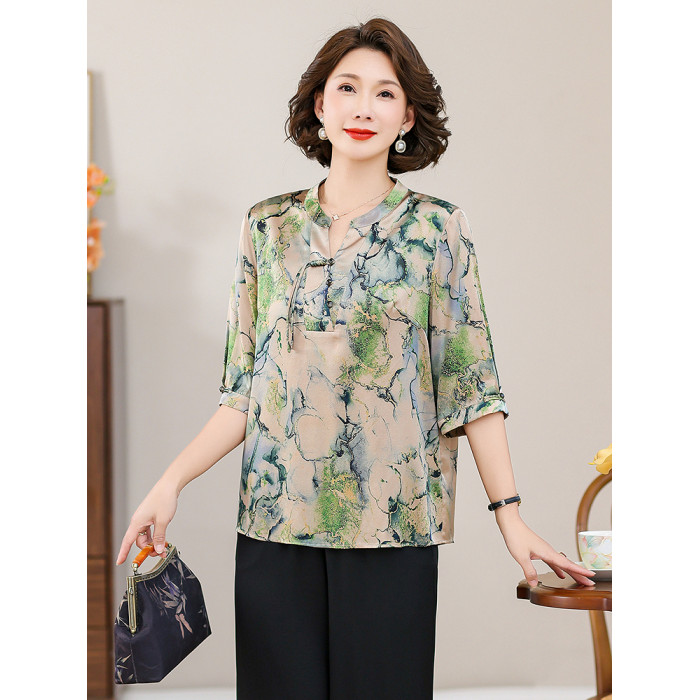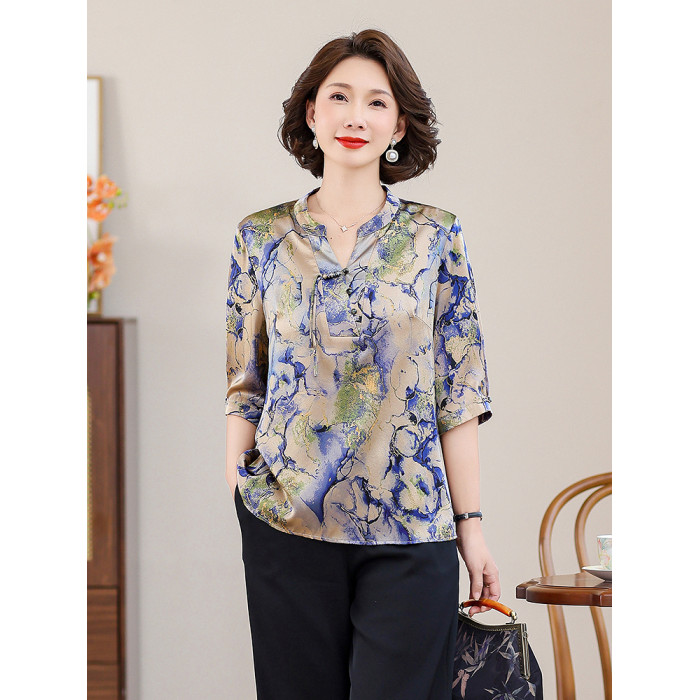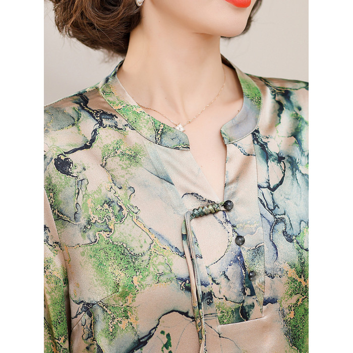 齊黛杭州真絲蠶桑絲上衣女2025夏季新款彈力氣質減齡復古媽媽襯衫