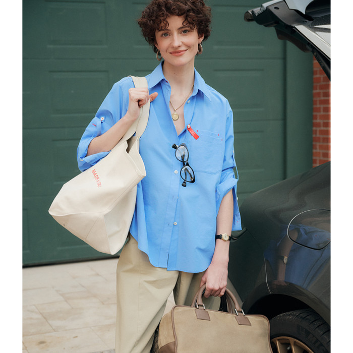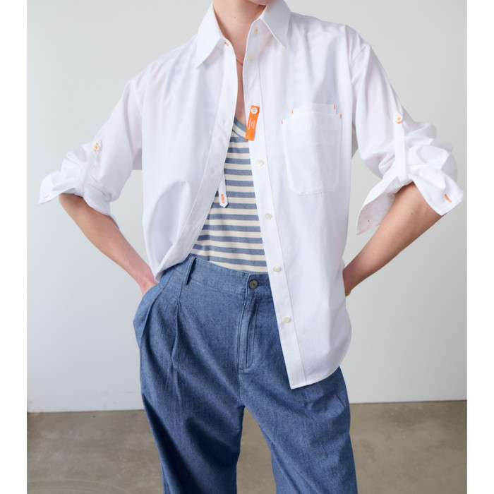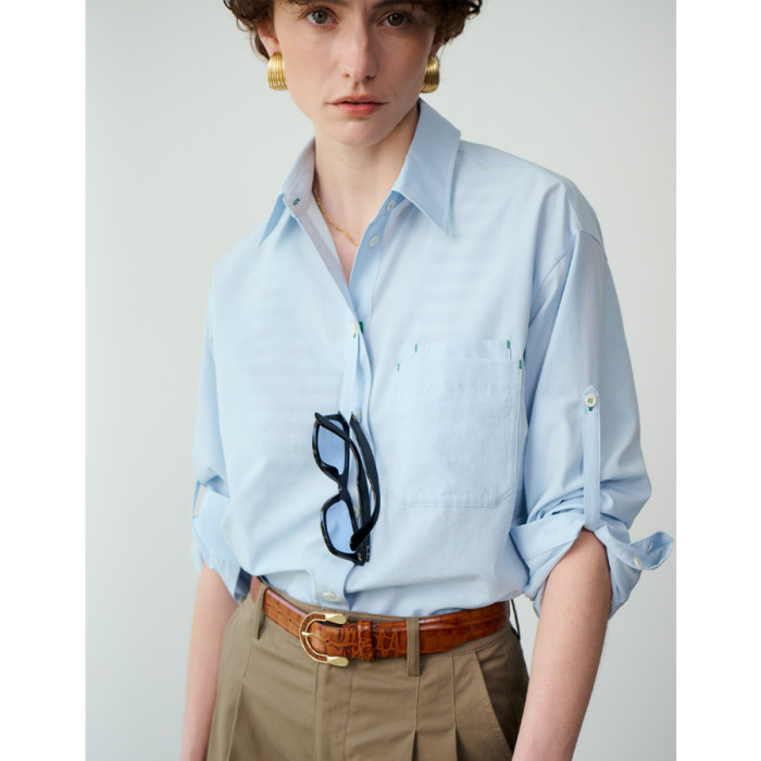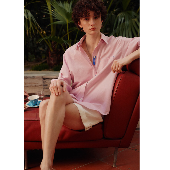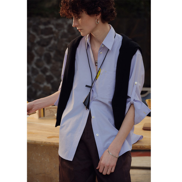 三所vintage 經典升級粉色進口紗襯衣抗皺長袖襯衫藍防曬衣女外套