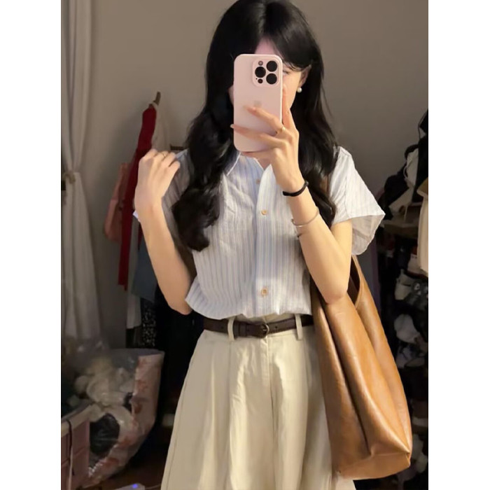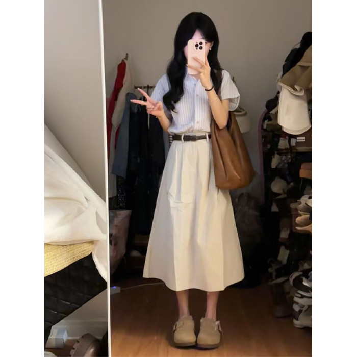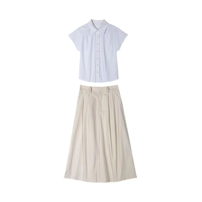 夏季韓系小個子穿搭一整套洋氣減齡襯衫時尚兩件套裝女百搭半身裙