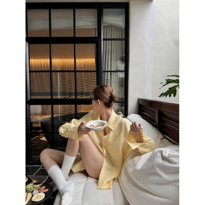 慵懶休閒防曬亞麻襯衫女2025新款夏季洋氣長袖設計感寬松薄款外套