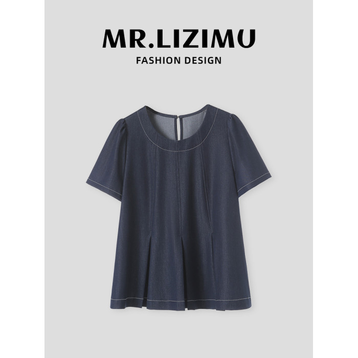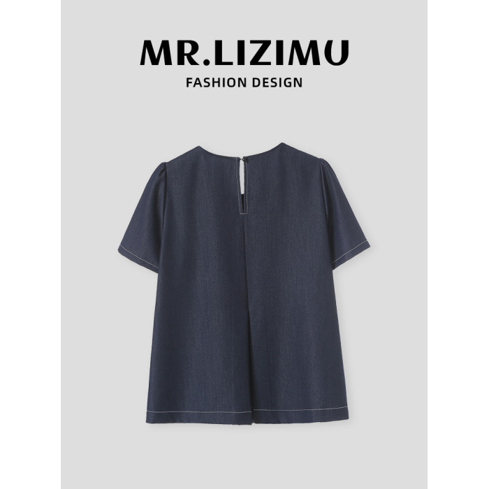 李子木先生圓領寬松顯瘦夏季休閒短袖襯衫女2025新款時尚百搭上衣