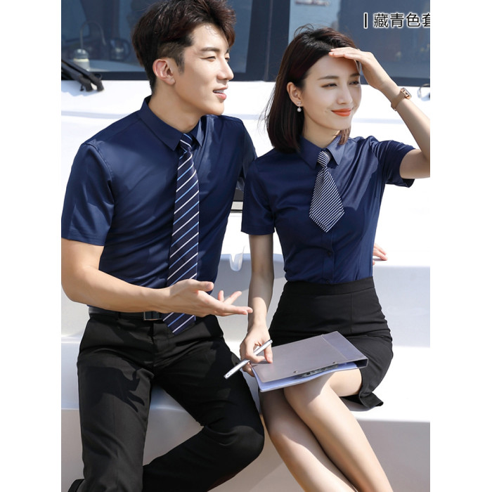 男士:藏青色短袖襯衫