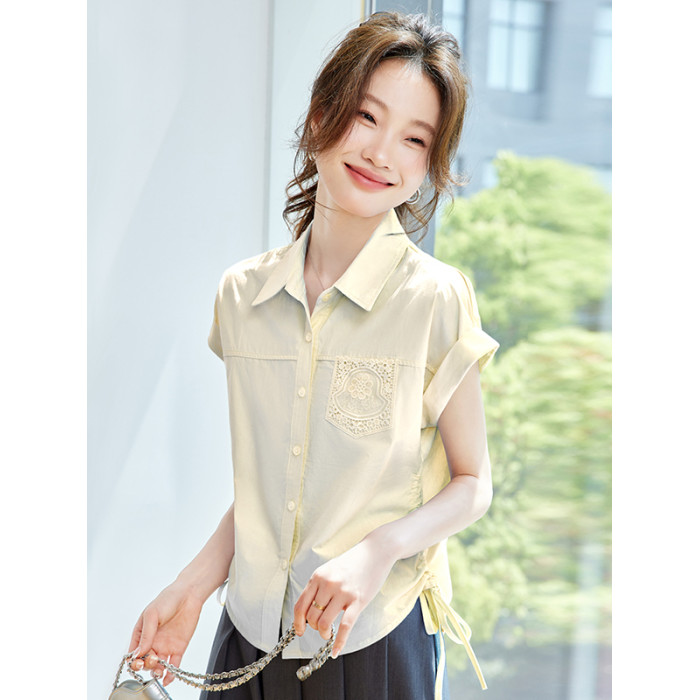 2025夏日新款真絲桑蠶絲白襯衫女短袖t恤高級感輕奢減齡洋氣上衣