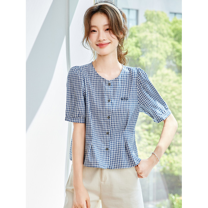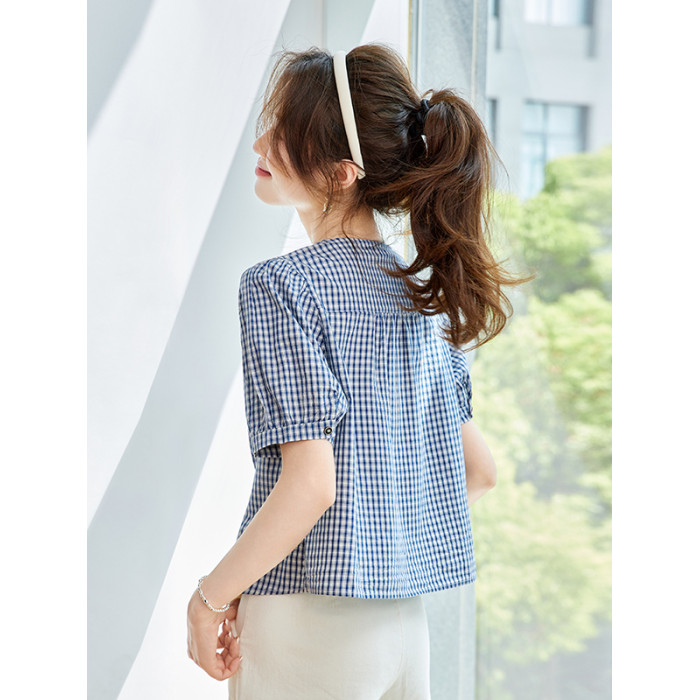純棉格子減齡短袖襯衫女上衣夏季2025新款爆款薄款輕奢高級感夏裝
