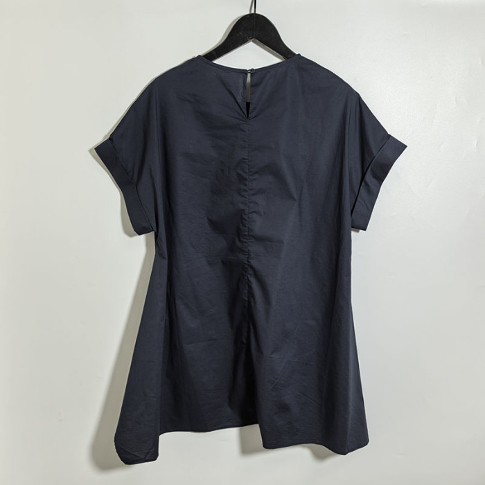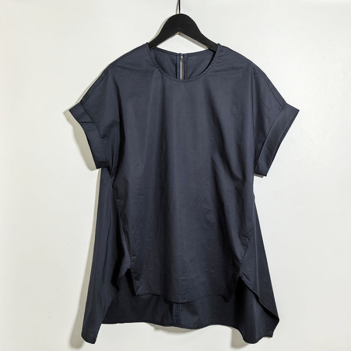 聖迪剪標女士圓領不規則全棉短袖襯衫0424