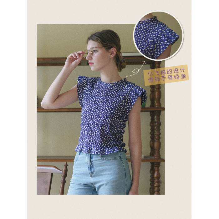 MarchNoon法式復古小衫進口鹽縮棉質顯瘦打攬短袖襯衫小裙擺上衣